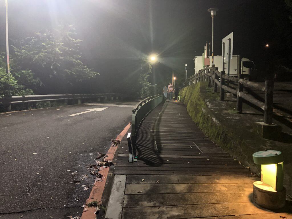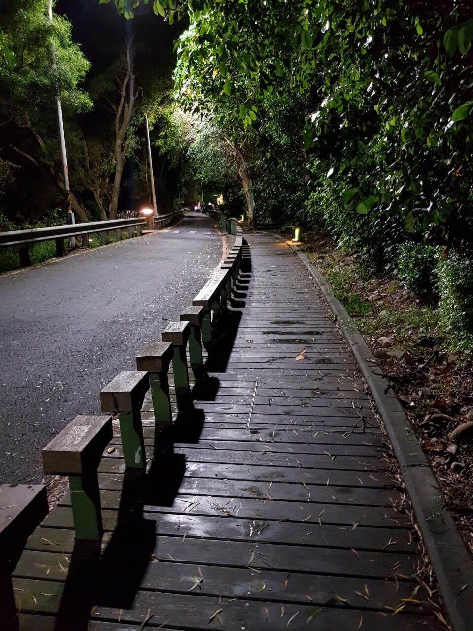 跟停車場旁邊有設立木頭棧道,其實從停車場往前看去,就可以看到相當漂亮的夜景喔