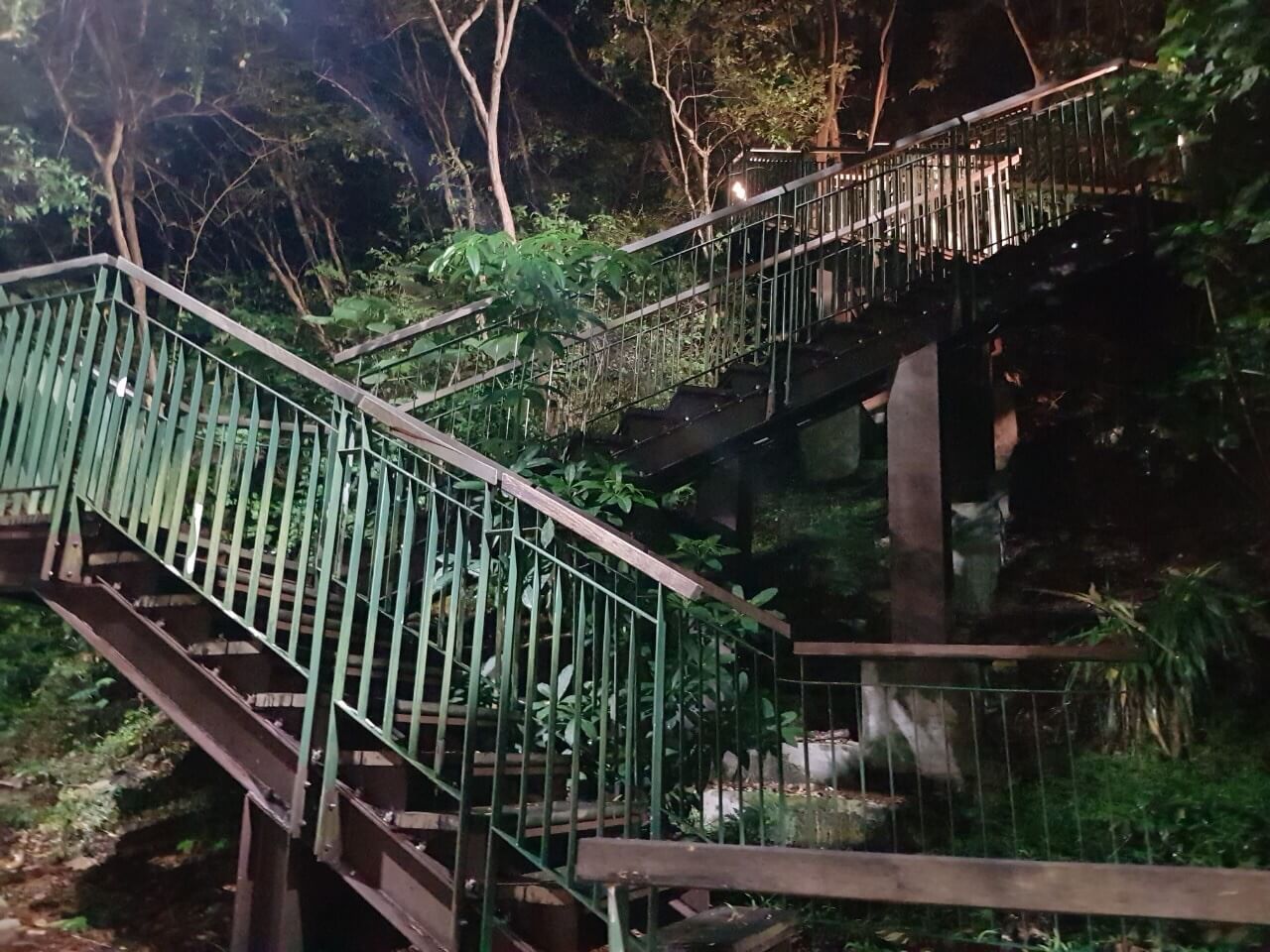 已經一段時間沒有持續運動的我們,走這個階梯實在有點痛苦,邊喘邊賣力的往上爬,就只為了更高一點的視野享受大台北的夜景。