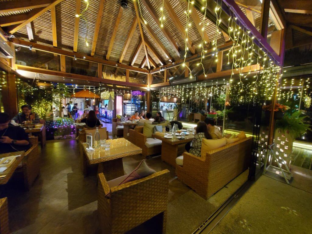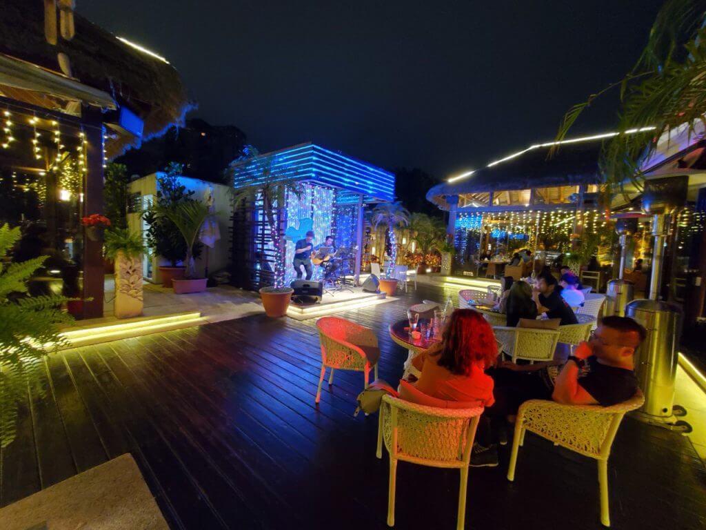 點完餐後,我和小伙伴就在榕堤水灣餐廳裡面四處繞繞,整理的裝潢就是非常漂亮,幾乎到處都看得到垂墜式的LED燈串裝飾著各個角落,而且整家店的風格打造的像是在渡假一樣,當天還有駐唱歌手在唱歌,為整體浪漫的氣氛點綴了不少