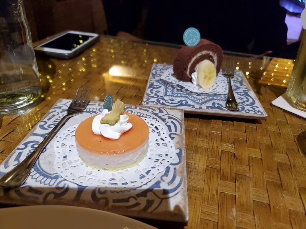 吃完主餐後,就應該要上一份甜點才算是這一餐的結尾,點主餐的時候有三種甜點可以選擇,分別是「烤布蕾、芭樂慕斯、香蕉巧克力捲」,只可惜當天烤布蕾已經沒有了,我們就各點一份芭樂慕斯和香蕉巧克力捲