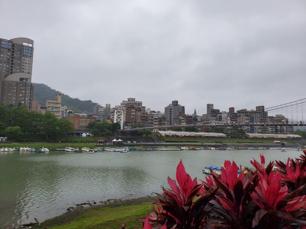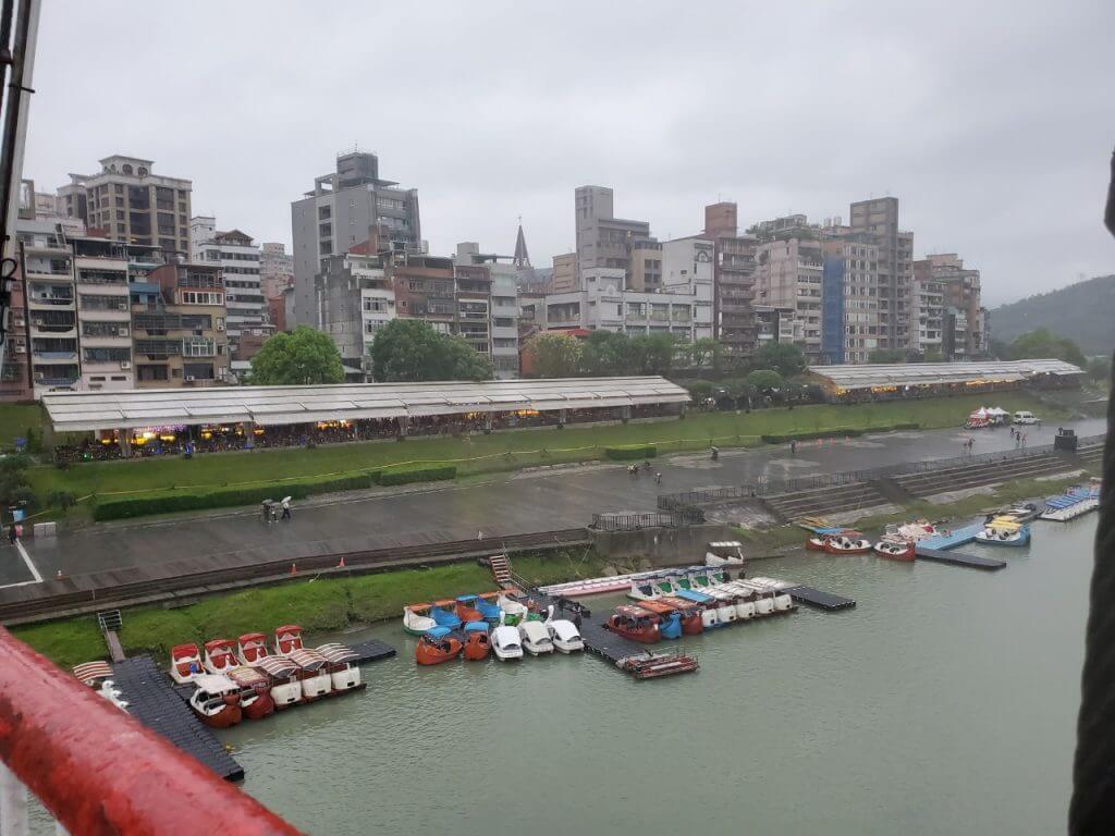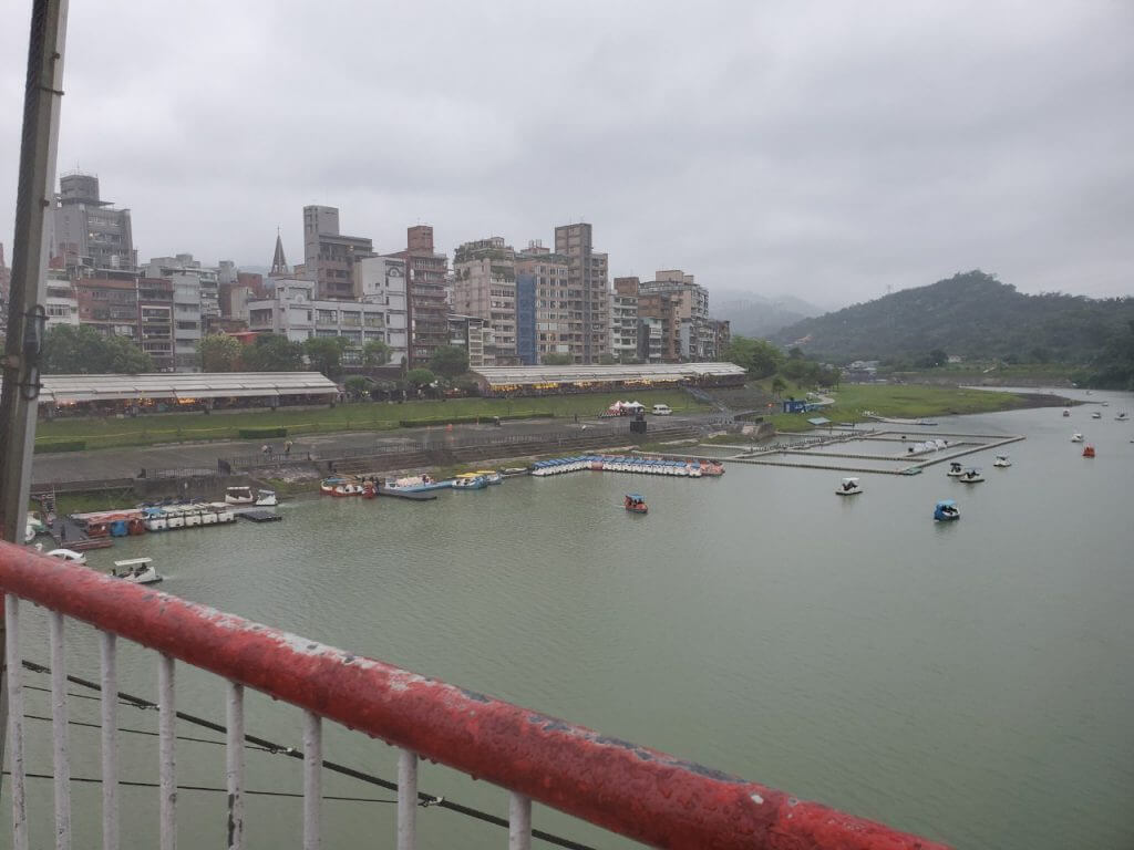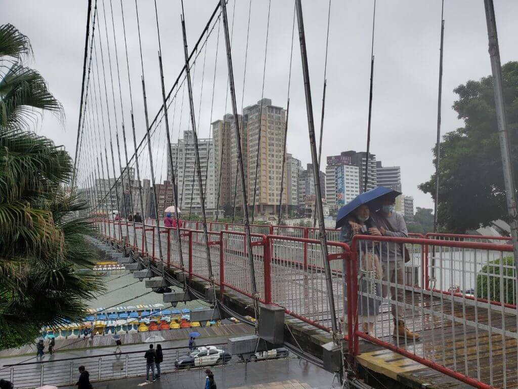 從吊橋上可以看到還是有人在踩天鵝船,我比較好奇的是在這種風大的天氣,坐在天鵝船上會不會有一種在玩急流泛舟的感覺呢哈哈