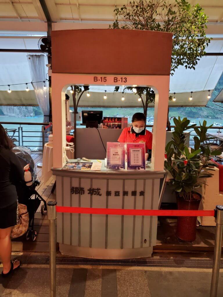 我們當天吃飯的餐廳是「獅城新亞洲麵食」,他在一排景觀餐廳中位於最邊邊,工作人員幫我們安排在最後一桌河岸邊的位置,並且告知在晚餐時段用餐時間為90分鐘,剛剛好我們可以好好的坐在這,看完第一場水舞秀