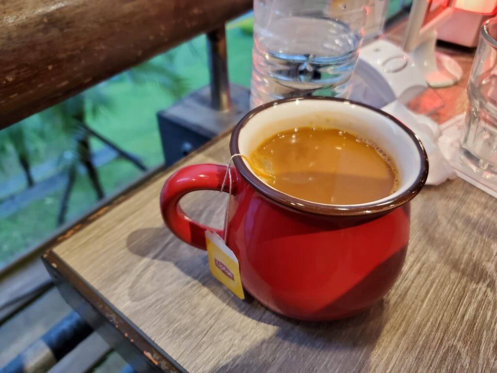 整體來說餐點中規中矩,除了惡魔打拋辣豆腐香氣略嫌欠缺外,其他的都還不錯,不過當天最讓我驚艷的是他的巧克力慕斯及泰式奶茶,巧克力慕斯是用較苦的巧克力做成,但是裡面卻有莓果醬夾心,吃起來不會太膩反而會一口接著一口,而泰式奶茶雖然是用茶包泡的,不過喝起來順口濃郁,香氣十足