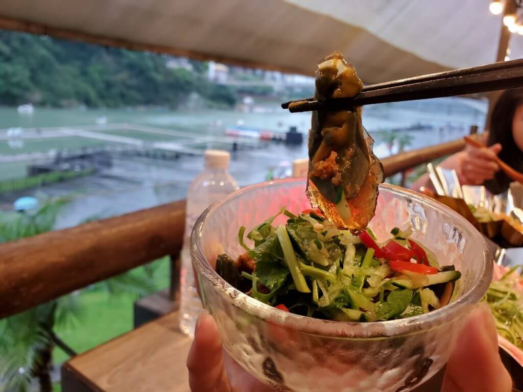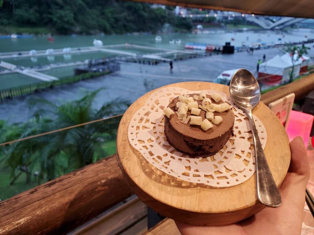 我們今天出發的時候比較晚,等我們到碧潭的時候已經4點半了,不過水舞的表演是從晚上6點開始第一場,而我們也還沒有吃過飯,就決定選一間景觀餐廳在座位上迎接第一場表演