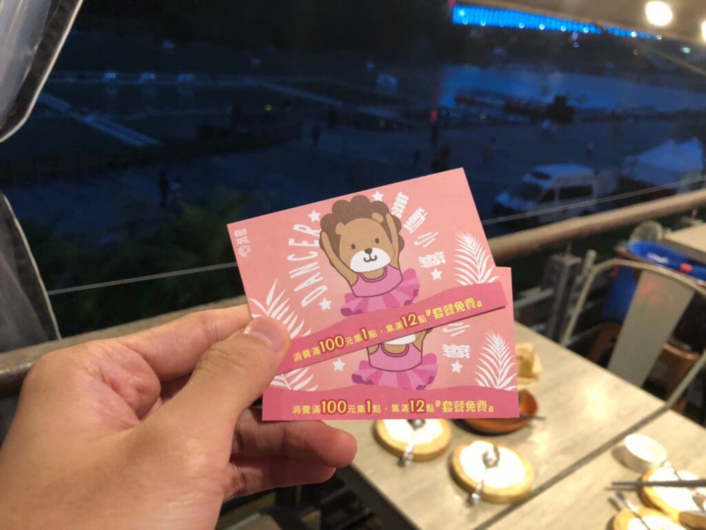 後來結帳的時候工作人員給了我們兩張集點卡,原來是現在有活動,消費滿100就集一點,集滿12點就能免費兌換一份套餐,我們當天兩張都滿了,等於可以免費兌換兩份餐點啊,但是要注意的是,活動只到水舞季結束哦