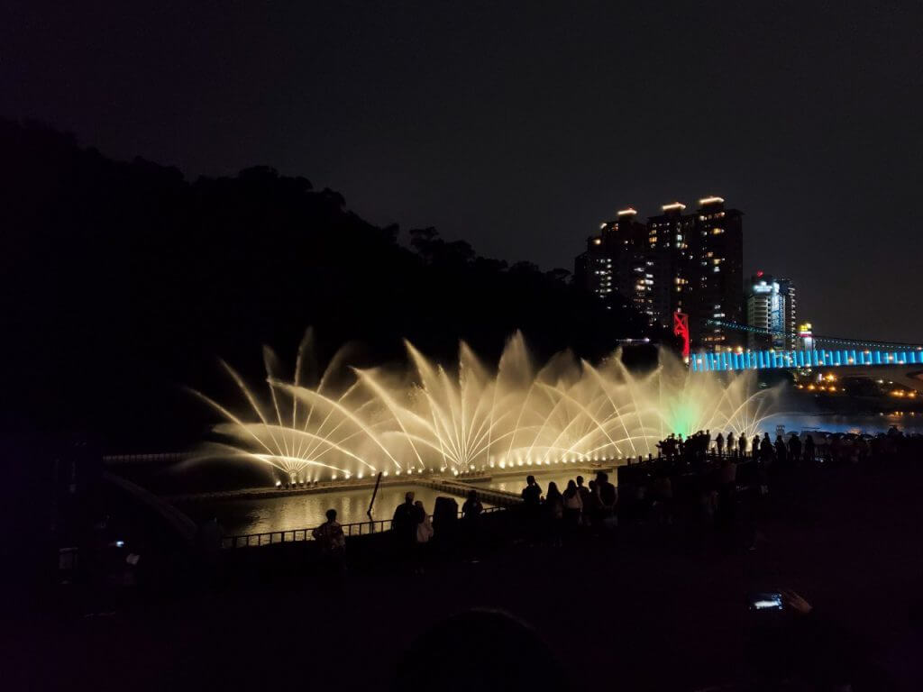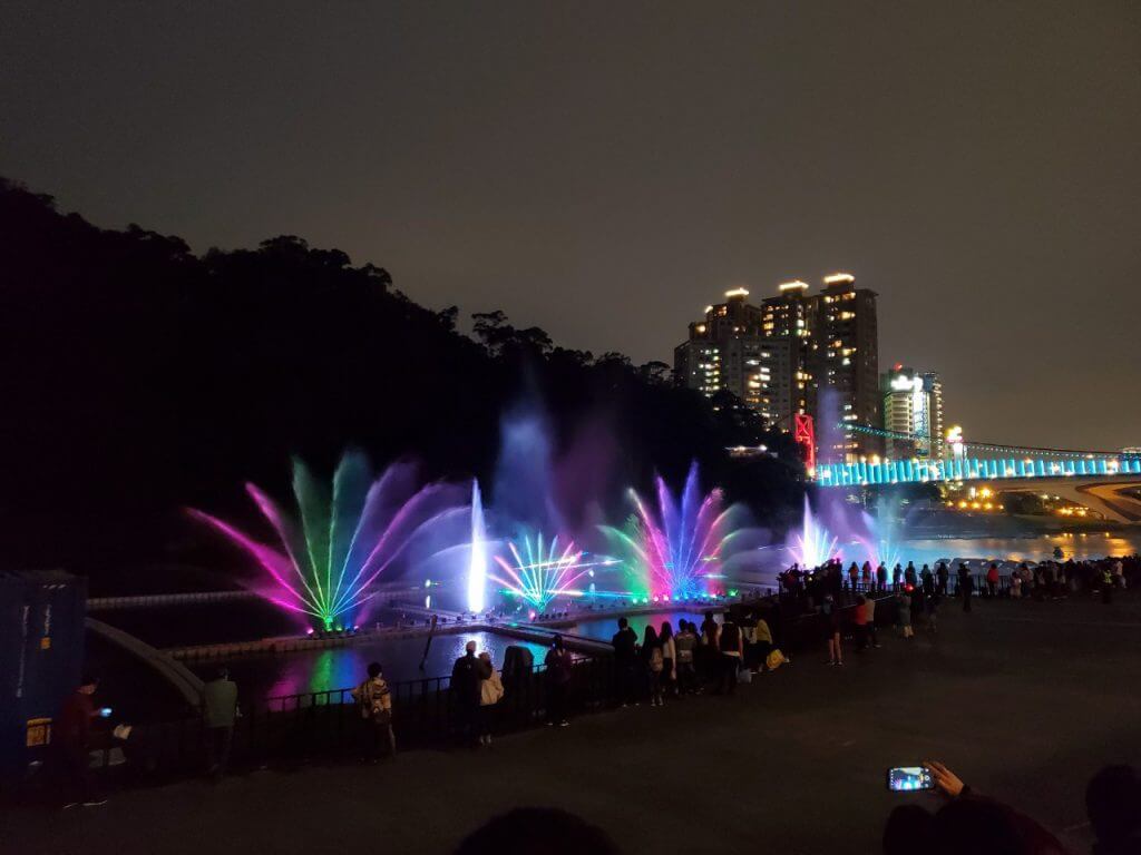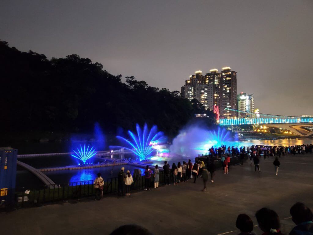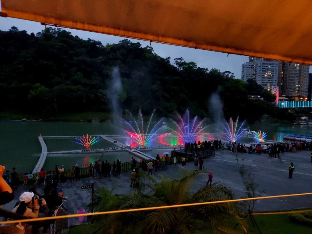 兩場表演的主題不同,呈現方式也不同,建議大家可以留在碧潭看2場以上的水舞表演,不過上網爬文時有看到說水舞的最後會有呈現字樣給大家看,不知道是不是因為我們的位置比較旁邊,字樣不太明顯,不過依稀能看見「謝謝醫護人員台灣加油」等字樣