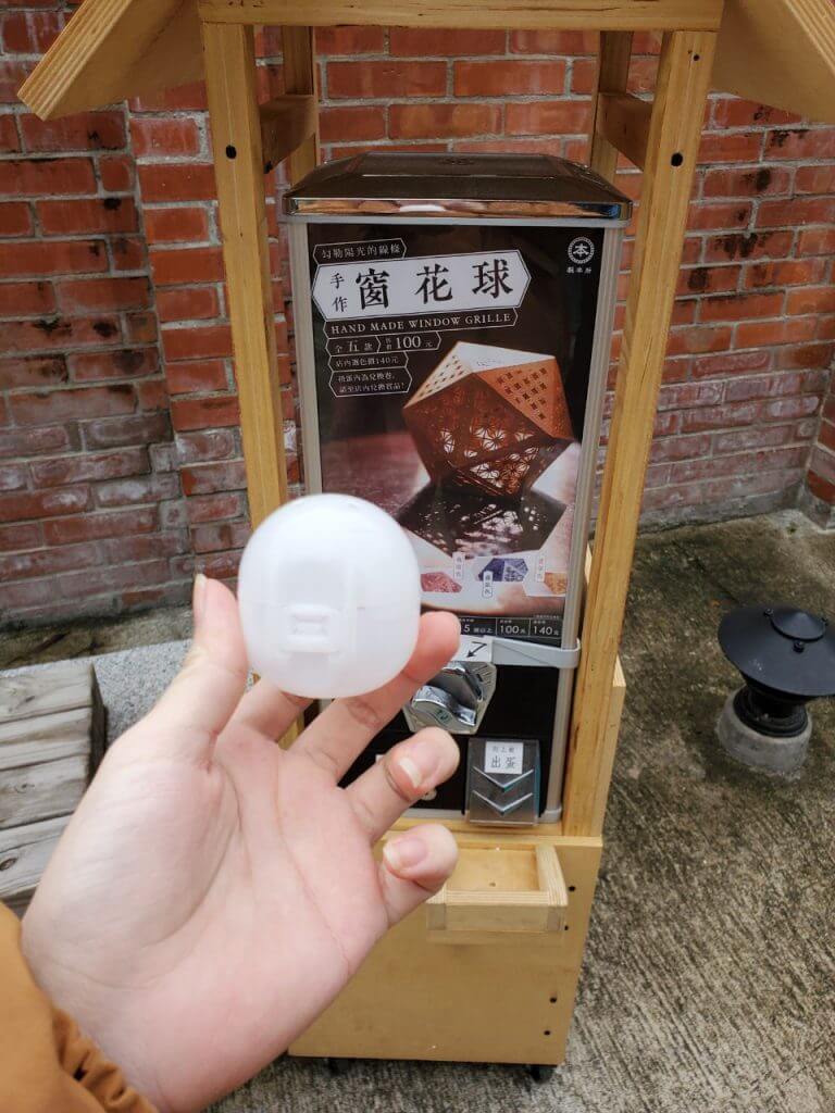 在立體書製本所的前面,有一台小小的扭蛋機,是可以和店家兌換窗花球的,我和小伙伴扭了一顆,沒想到一拿給老闆,老闆就說:我們好幸運扭到了隱藏版金色的,這麼多顆裡面就只有一顆隱藏版的,我們真的是太幸運啦 ~~~