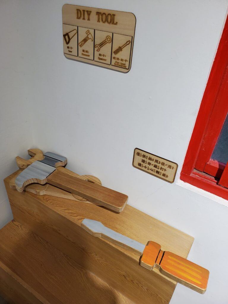 還有兩間房間比較現代化,但是因為裝潢的很漂亮,反而大家都在這裡拍照,一旁還有木製的工具供大家拍照的時候用,不過要小心不要揮來揮去,敲到有可能會受傷哦