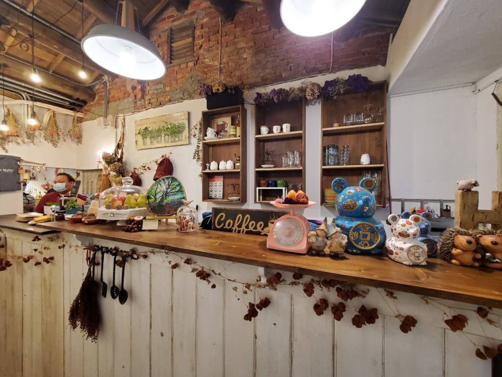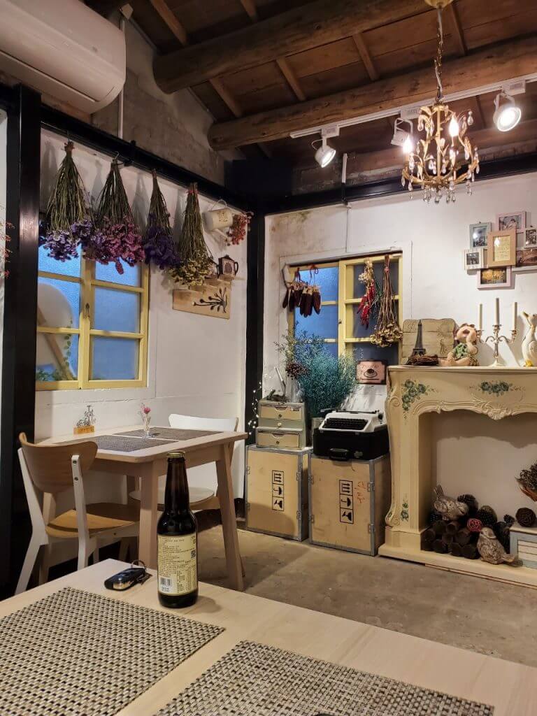 在馬祖新村裡,有一間特別想介紹的咖啡廳,他的入口要從外邊的圍牆進去,從門口看起來像是一間復古咖啡廳,但是一進去會發現整間店裡充滿了網美元素-乾燥花