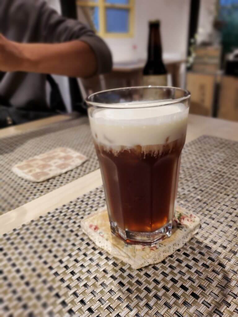 雪煉紅茶是以起司奶油搭配紅茶,有點類似奶蓋的概念,如果不攪拌喝起來會有點鹹鹹的,但是攪拌以後就像是喝奶茶一樣