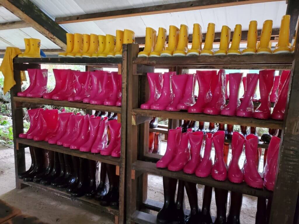 我們到鹿羽松牧場的時候,工作人員請我們先換上雨鞋,因為牧場裡幾乎都是土地,再加上下過雨有很多地方土地都比較濕軟,這裡的雨鞋都很乾淨,而且不只有分大人小孩,還有分尺碼,這讓大腳、小腳的朋友感覺到被照顧呢