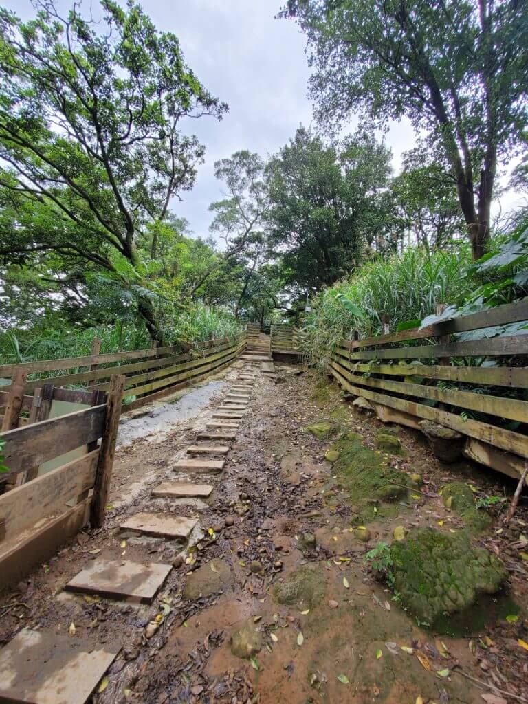 搭著水牛車就像是在坐雲霄飛車一樣,感覺特別有趣,爬過一段陡峭的爬坡路之後,我們來到了動物區的地方,從這裡開始就要開始步行,不過裡面都有舖放石頭和石塊,也不至於寸步難行