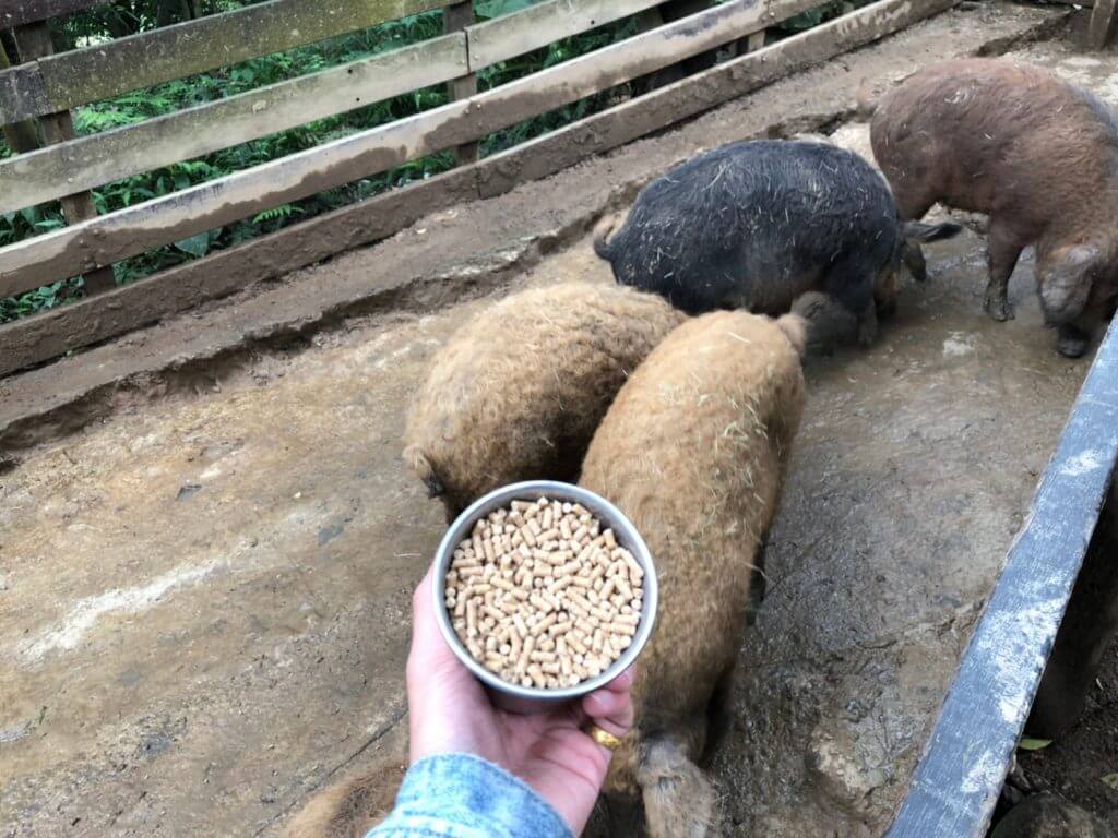 餵食綿羊豬的飼料只能使用牧場供應的飼料,千萬不可以亂餵食他們,而在餵食綿羊豬的時候要特別注意,因為綿羊豬還有些許野性,投餵飼料的時候直接丟在地上,千萬不要用手去餵,不然有可能會被咬哦