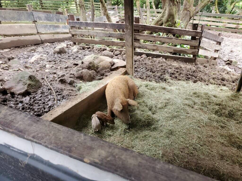 而且在前兩天剛好有兩隻綿羊豬剛出生,我們也就這麼幸運的看到了小綿羊豬的身影,和豬媽媽的體型比起來小綿羊豬小了很多,真的是好可愛啊 ~