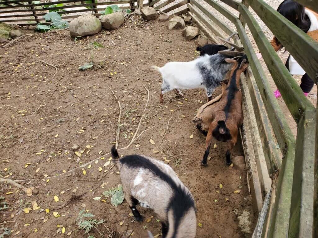 在跳跳羊裡面,也有剛出生幾天的小羊們,但是被保護起來看不太到,不過沒關係,其他跳跳羊看到你身上有飼料可以吃,每一隻都很熱情的一直想將頭伸出圍欄外,光是這幾隻就已經讓我們招架不住了