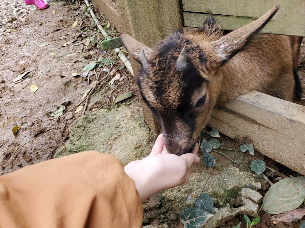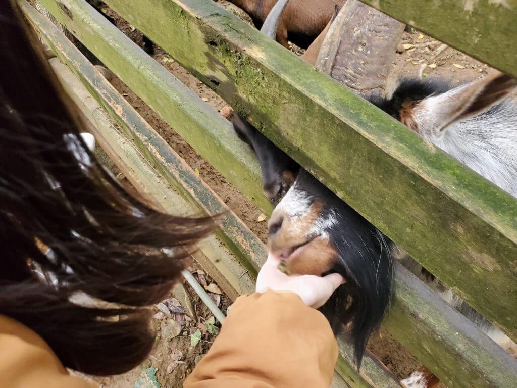 而餵食跳跳羊時,可以直接將飼料放在手上餵食,不用擔心跳跳羊會咬到自己,因為他們進食的方式就跟狗狗一樣,會用舌頭將食物捲走,你也只會感覺到手癢癢的