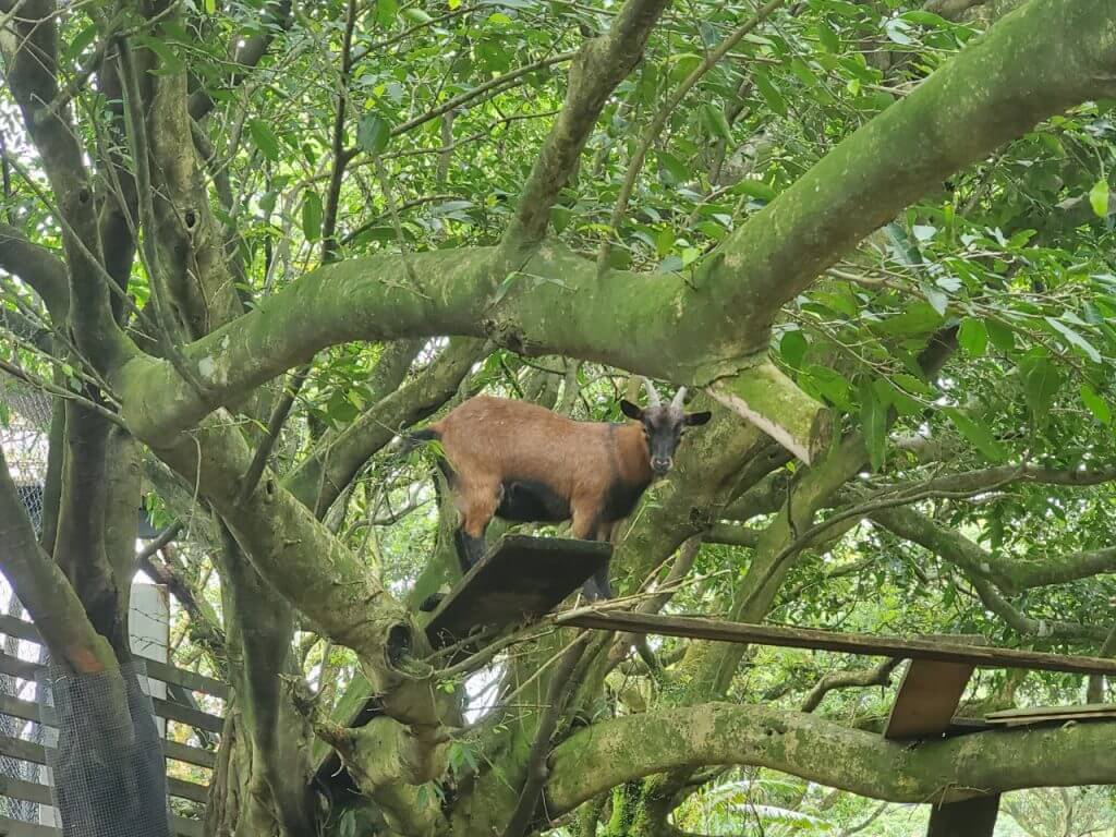 三兩下的,原本還很多葉子的樹枝,就被熱情的跳跳羊們全給吃下肚子裡了,而剩下的樹枝,也直接堆在一旁為這個牧場的其他植物當作堆肥