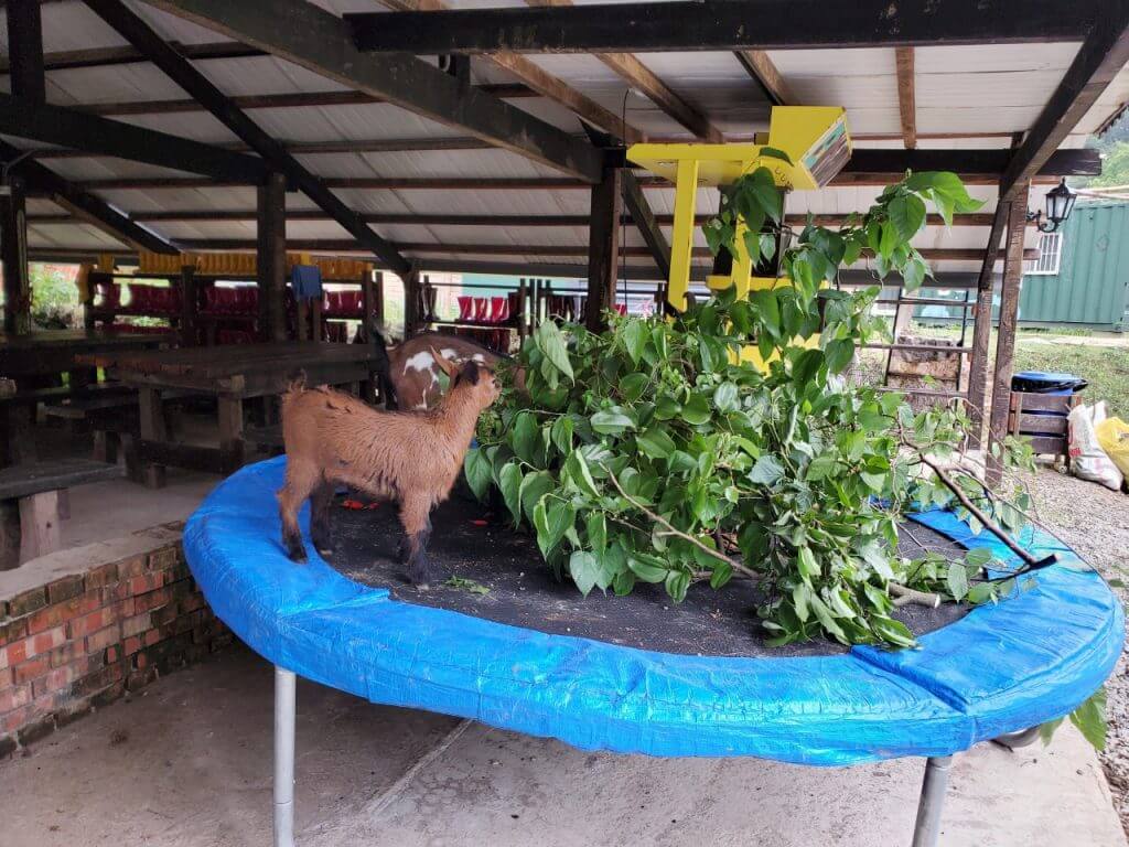 每一隻跳跳羊都活力充沛,跳上跳下跑來跑去,好像永遠都不會累一樣,而座位區的超大跳跳床原本是要讓他們玩的,沒想到跳跳羊們不領情,只會在上面吃東西,反而對於座位區的椅子比較有興趣呢