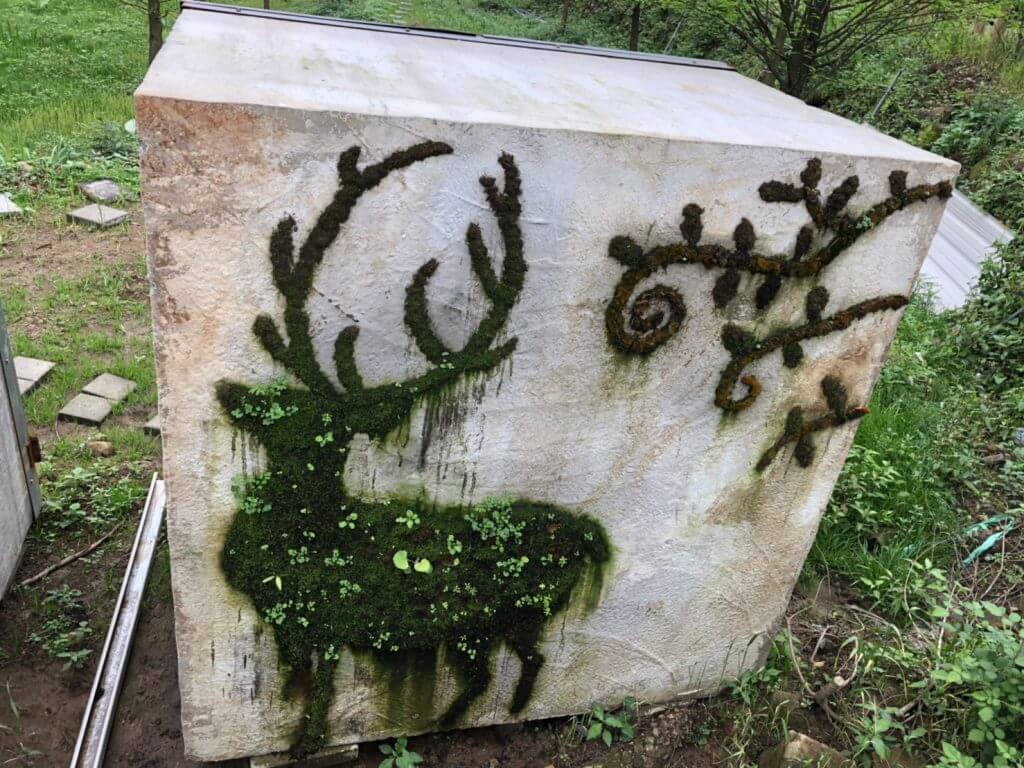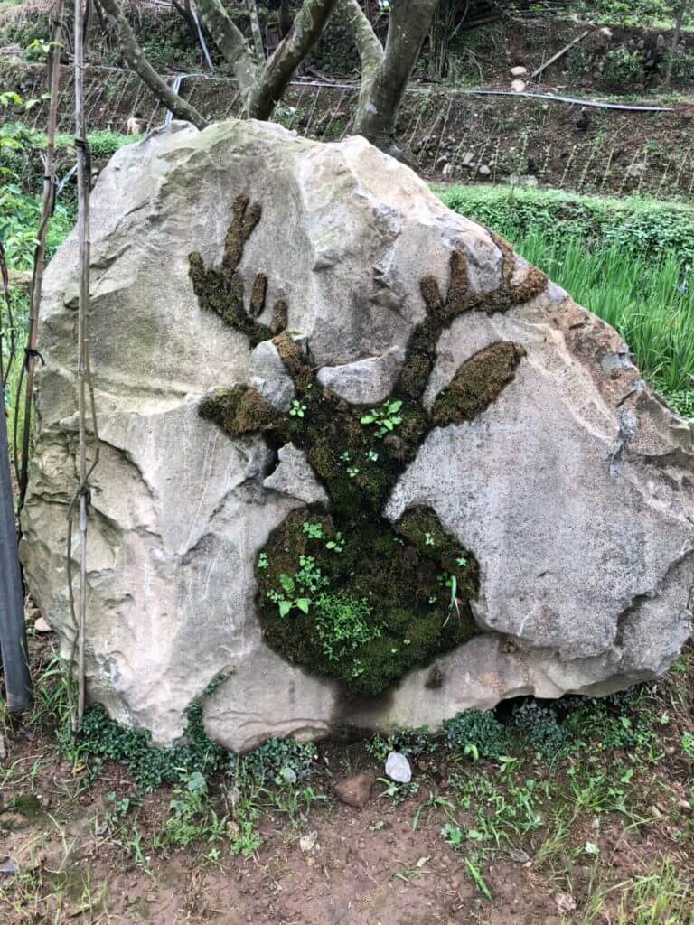 我和小伙伴在鹿羽松牧場逛逛的時候,發現在石頭上有一些像是苔蘚植物製成的圖案,經工作人員解釋才知道,原來這些圖案都是牧場老闆自己弄的,真的是好厲害啊
