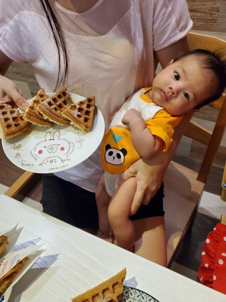 最貼心的是,老闆和老闆娘看到我們帶著媛媛過來,還特地在飲料的後面和盤子上寫下「小baby hi」和「健康小baby」的字樣,真的是很貼心耶