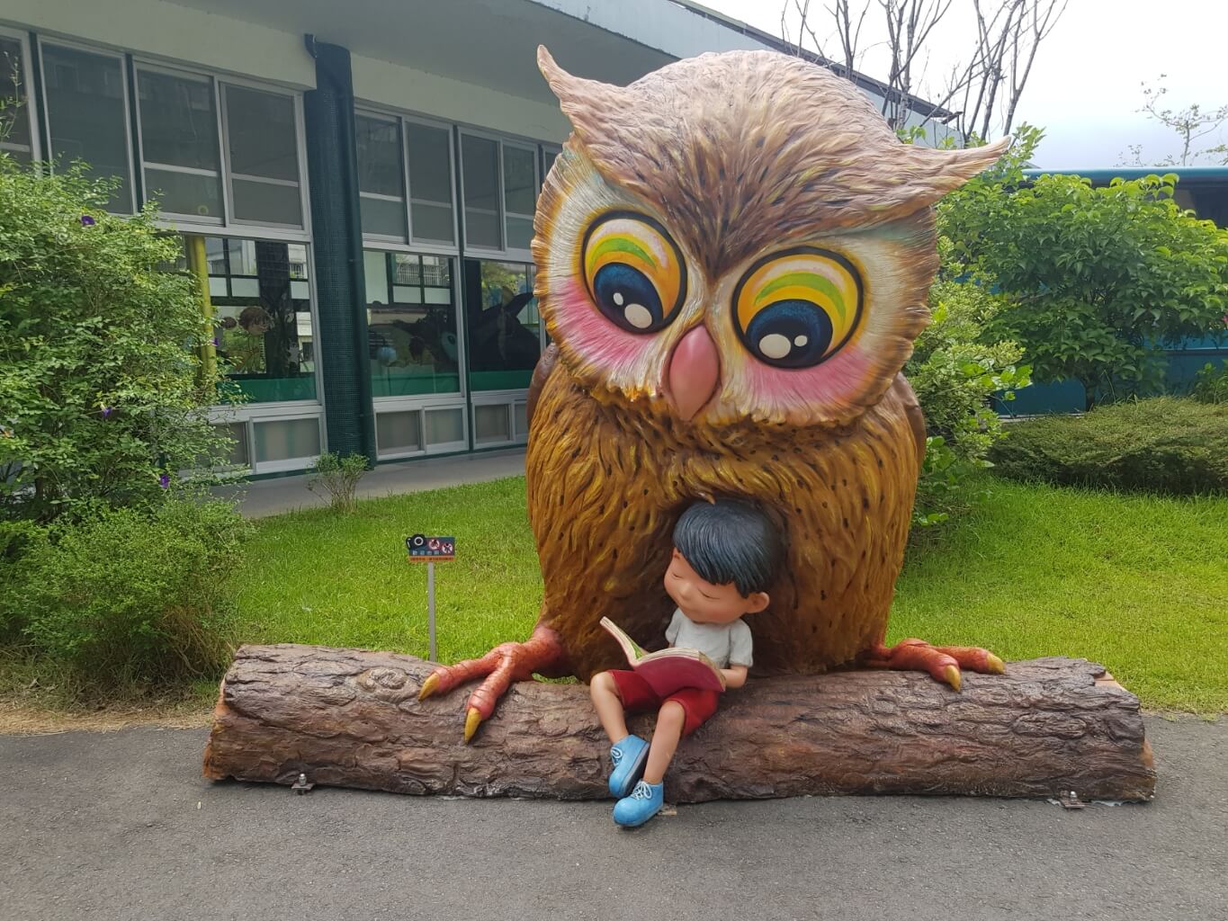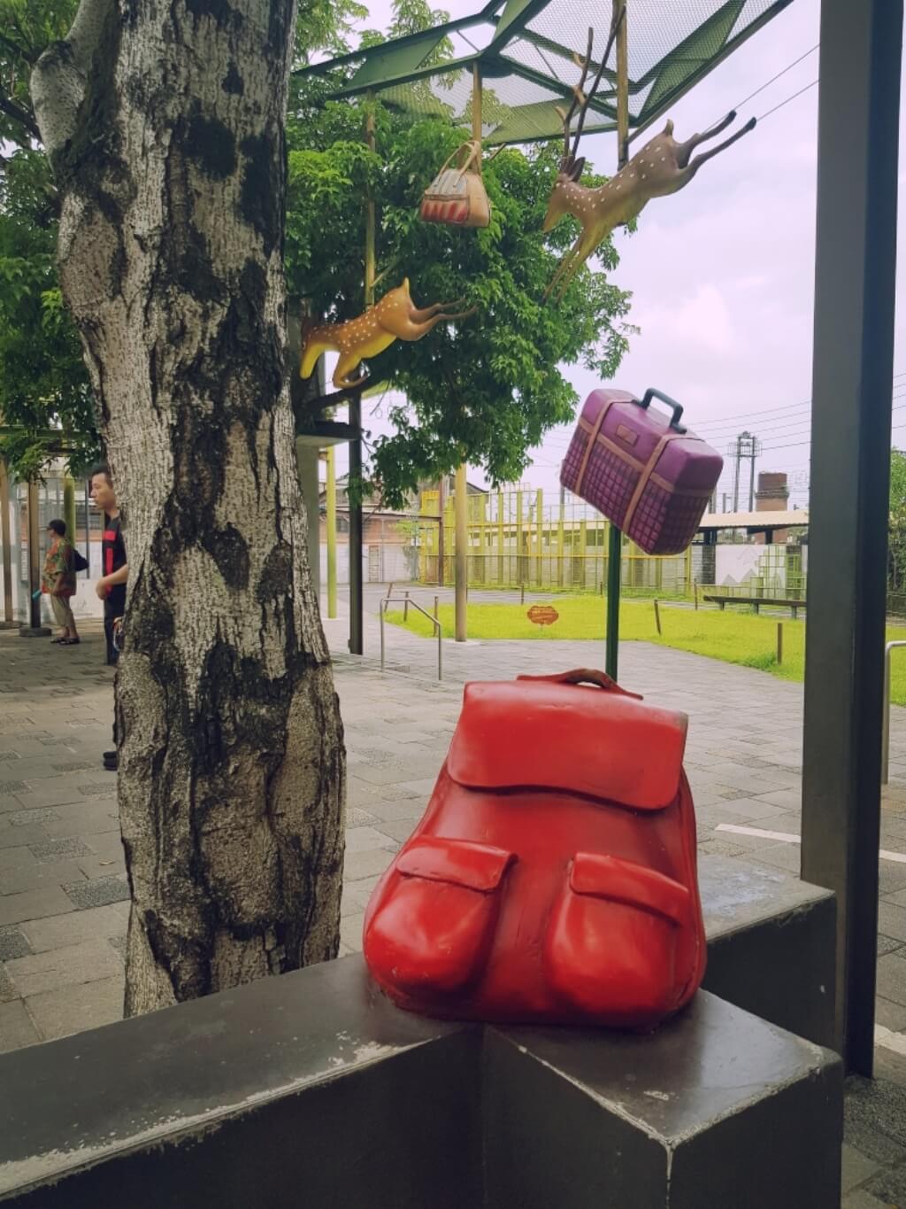 到了宜蘭車站以後會先看到一隻躲在車站裡面的長頸鹿,而丟丟噹森林就在車站的對面