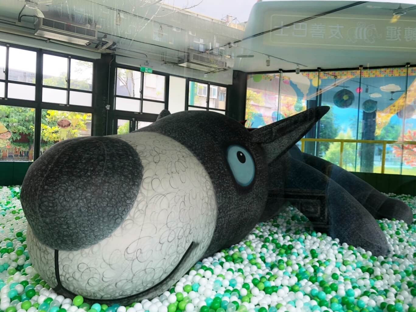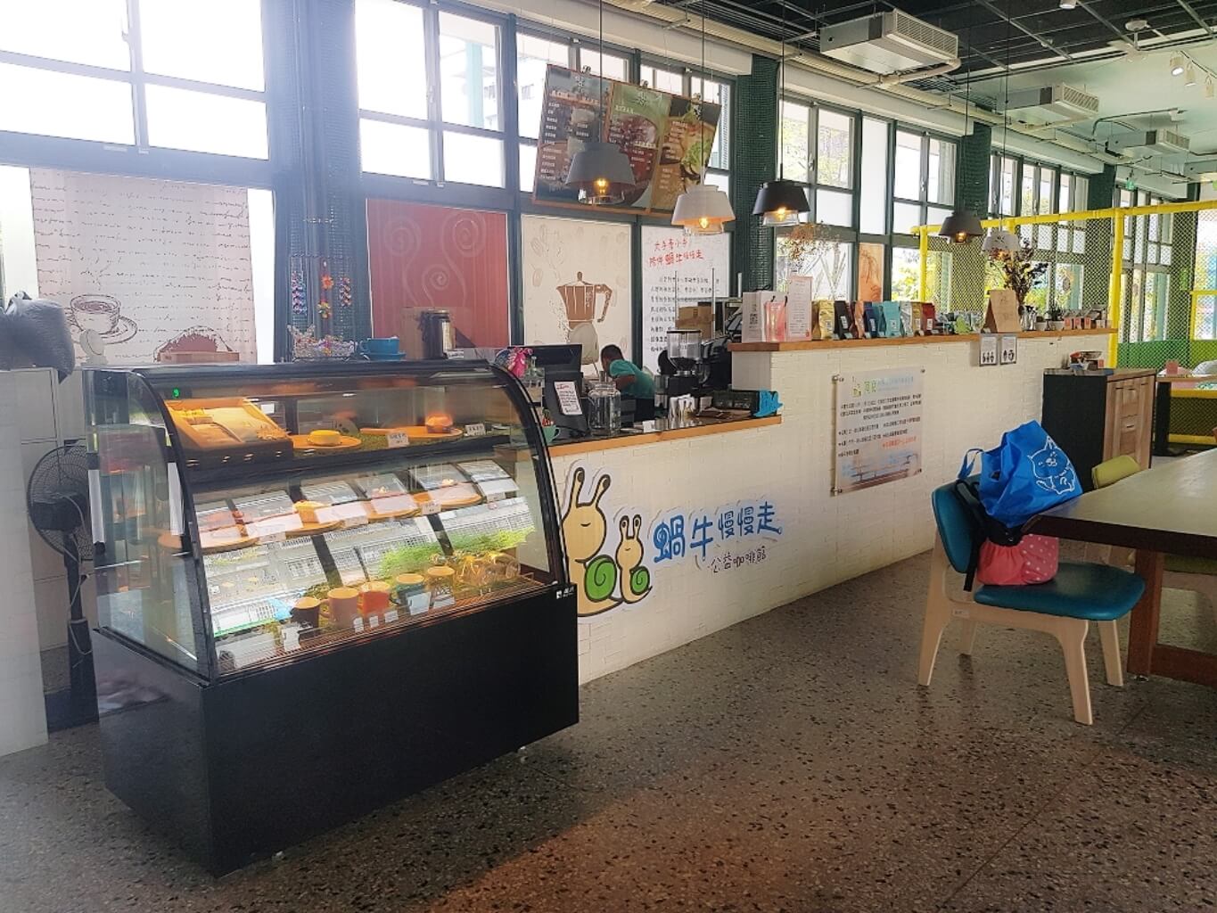 值得一提的是,在轉運站內有一間「蝸牛慢慢走公益咖啡廳」,裡邊除了販售一些茶點、幾米的周邊產品外,還有視障按摩及一個小孩子看到會瘋狂的超大球池
