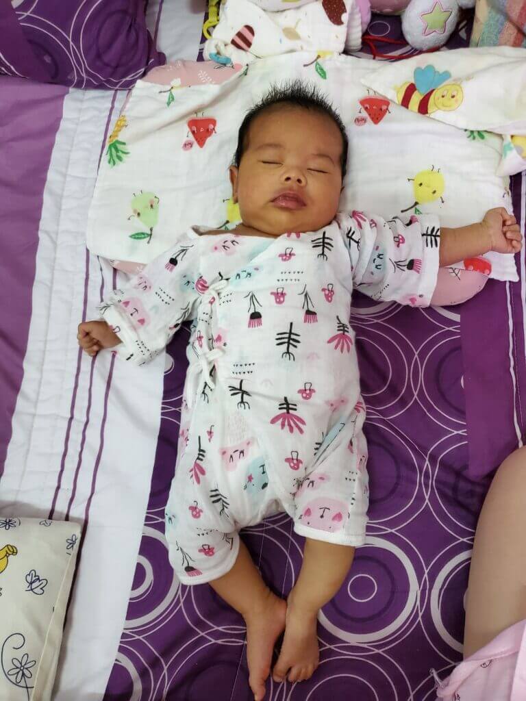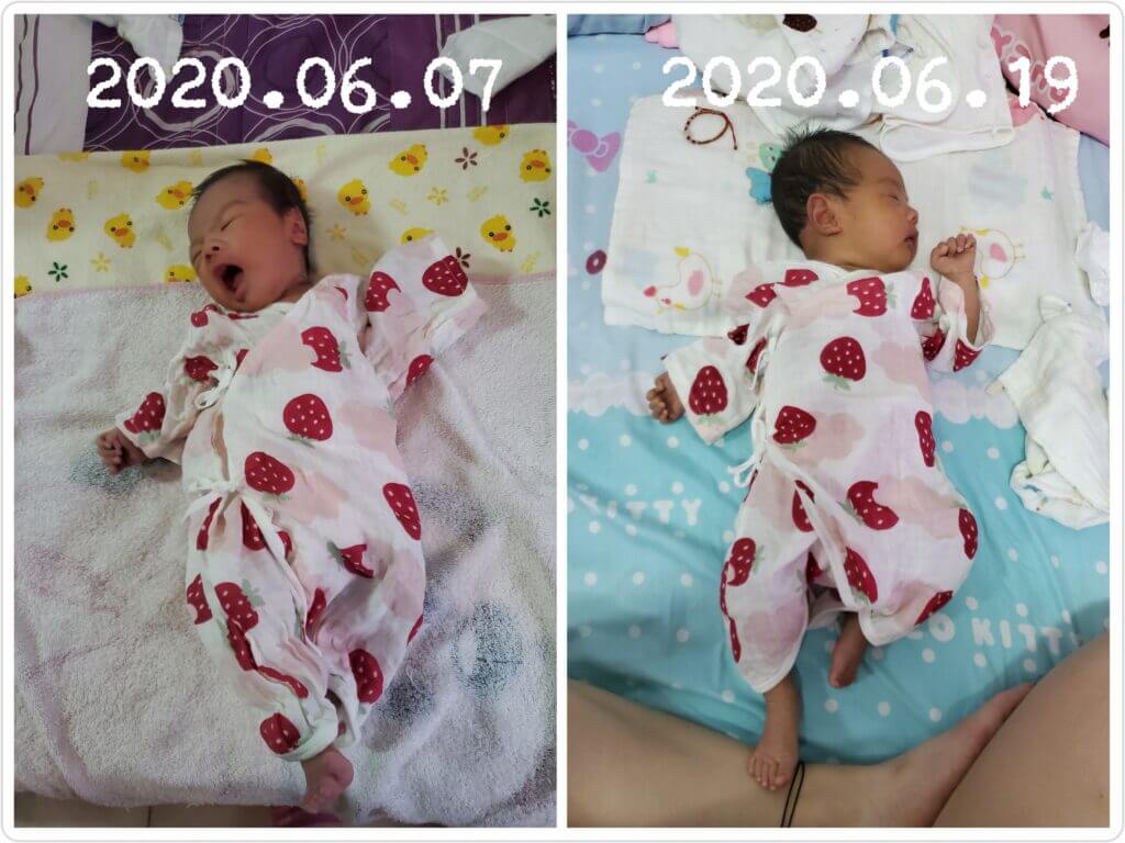 就當媛媛又恢復了差不多的喝奶時間後,突然發現,咦 身上穿的紗布衣是不是比較合身了?原本小小的臉是不是好像長出了兩坨嘴邊肉了?怎麼抱起來的感覺有點沉甸甸的?