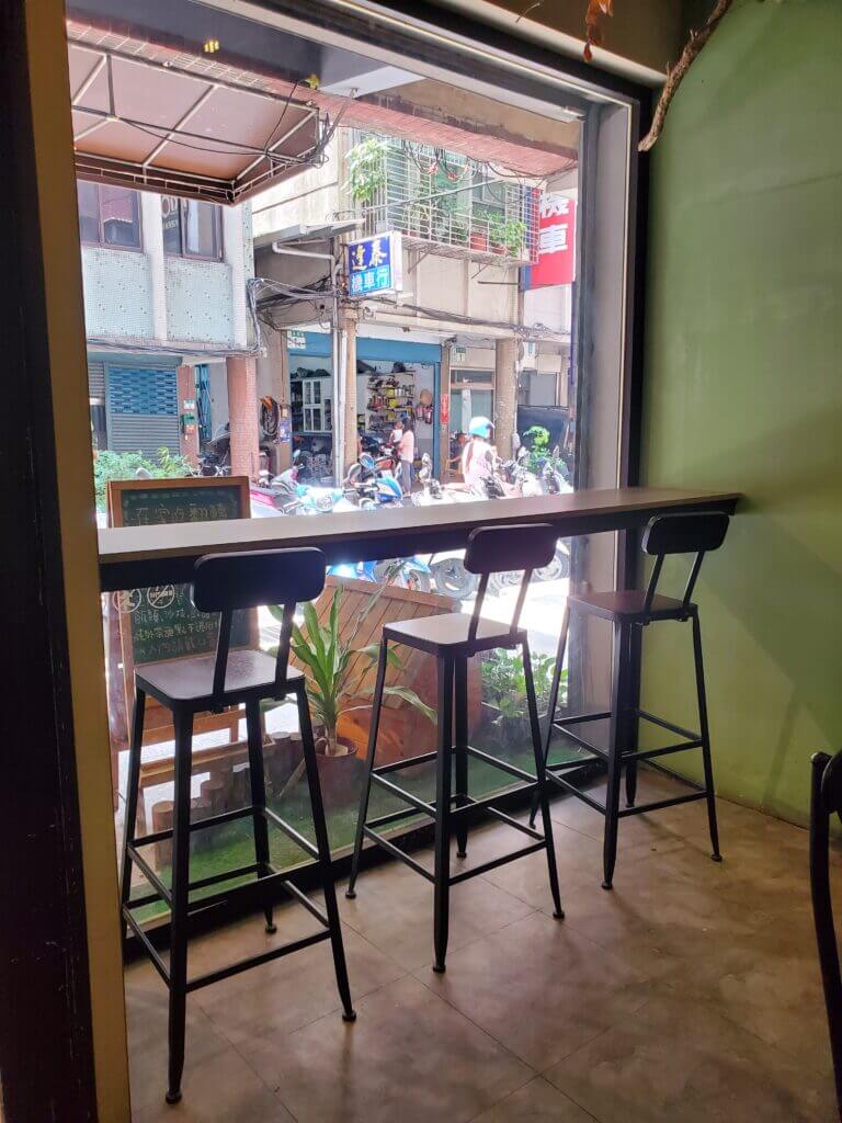 店裡有一塊小角落佈置的很漂亮,一旁還有提供乾燥花束給大家拍照,而最熱門的應該就是落地窗前這吧台區吧,雖然外面的景色並不是什麼美景,但是採光很不錯,是一個拍照的好地方