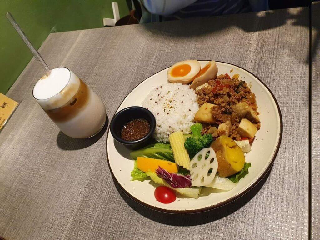 和日式照燒雞腿的附餐一樣,我對打拋豬的期待蠻大的,但是吃起來辣度稍嫌不足,整體表現中規中矩,唯一覺得特別的是打拋豬裡有加入杏鮑菇,讓我覺得很新奇