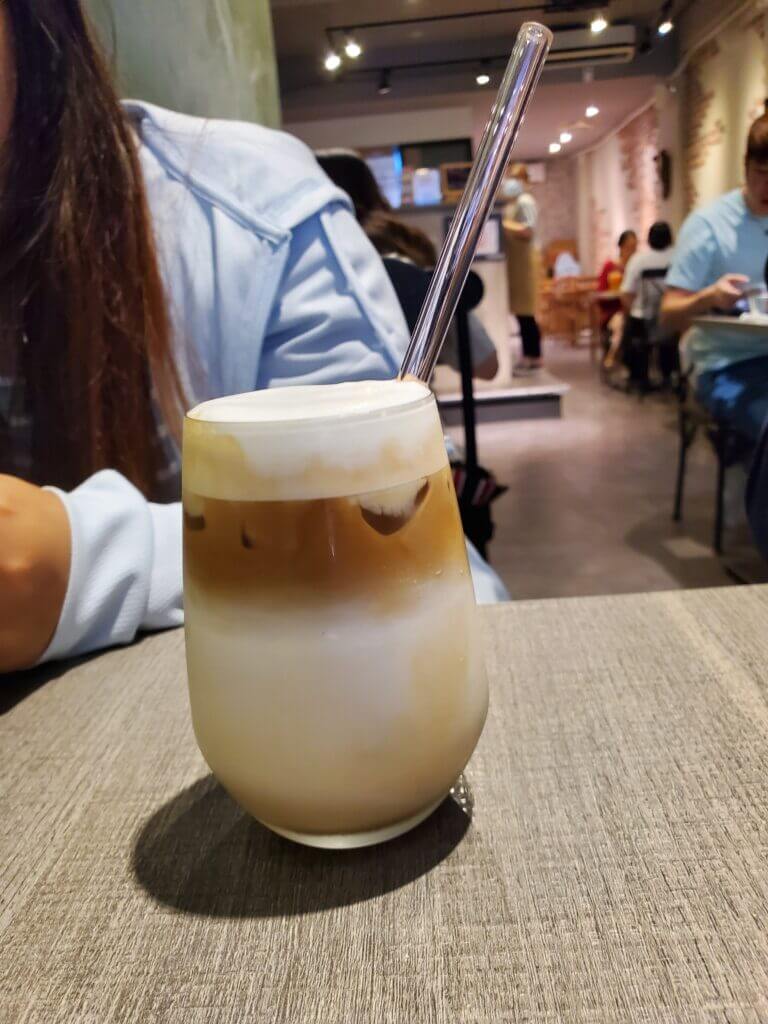 拿鐵的漸層很美,送上來的吸管竟然是玻璃吸管,在減塑這方面給一個大拇指