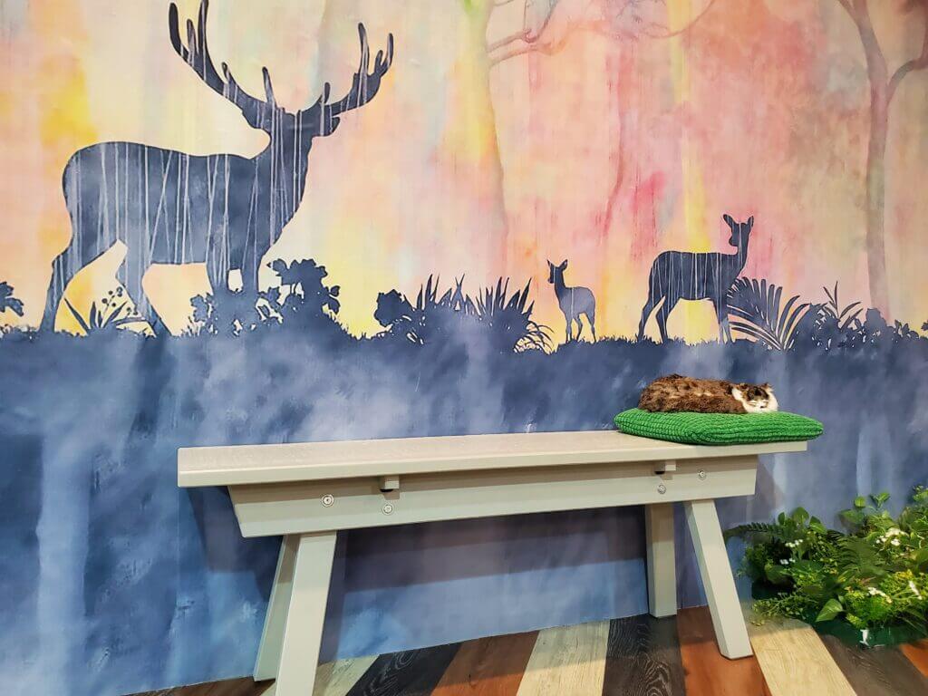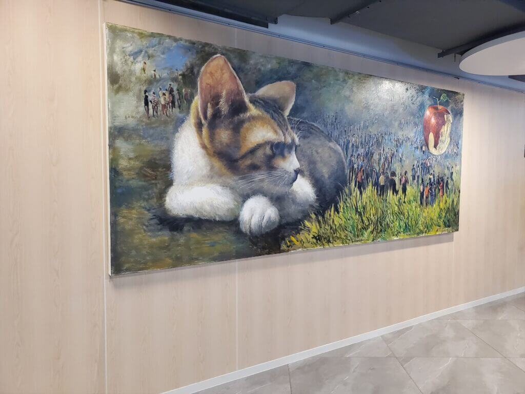 還有一幅巨大貓咪看著縮小版的人們,那個貓咪栩栩如生,讓我不禁佩服這些作畫的畫家