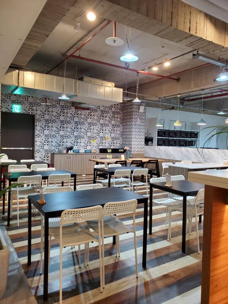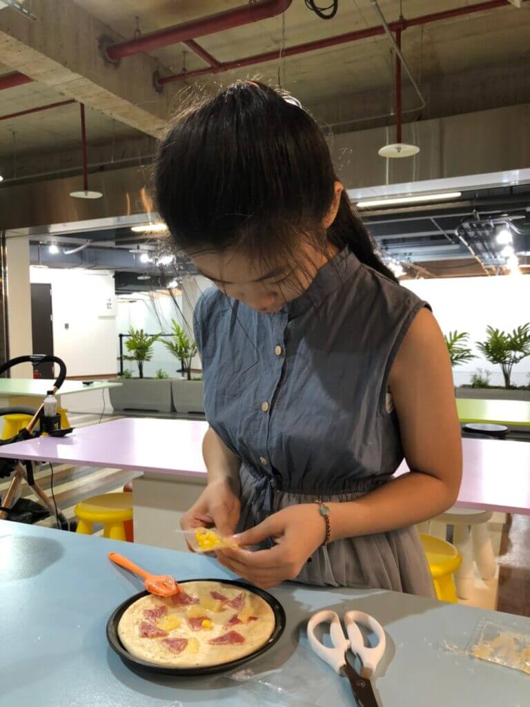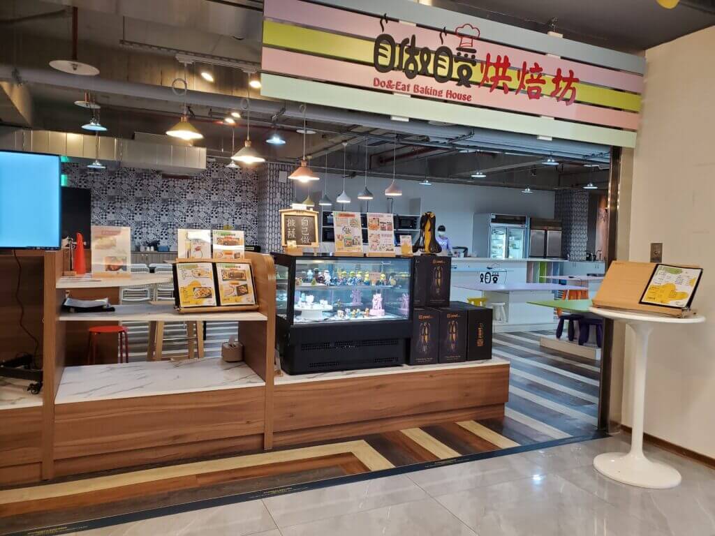 自作自受烘焙坊裡面很寬敞,分成座位區、DIY區還有小朋友遊戲區,因為這天來到這裡媛媛還有門禁時間,我們只能挑快速簡單的餐點來體驗,所以選擇了披薩和義大利麵