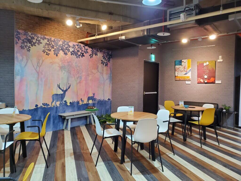 在自作自受烘焙坊裡面還有一面超漂亮的網美牆,來到這裡一定要拍照打卡上傳啊 ~
