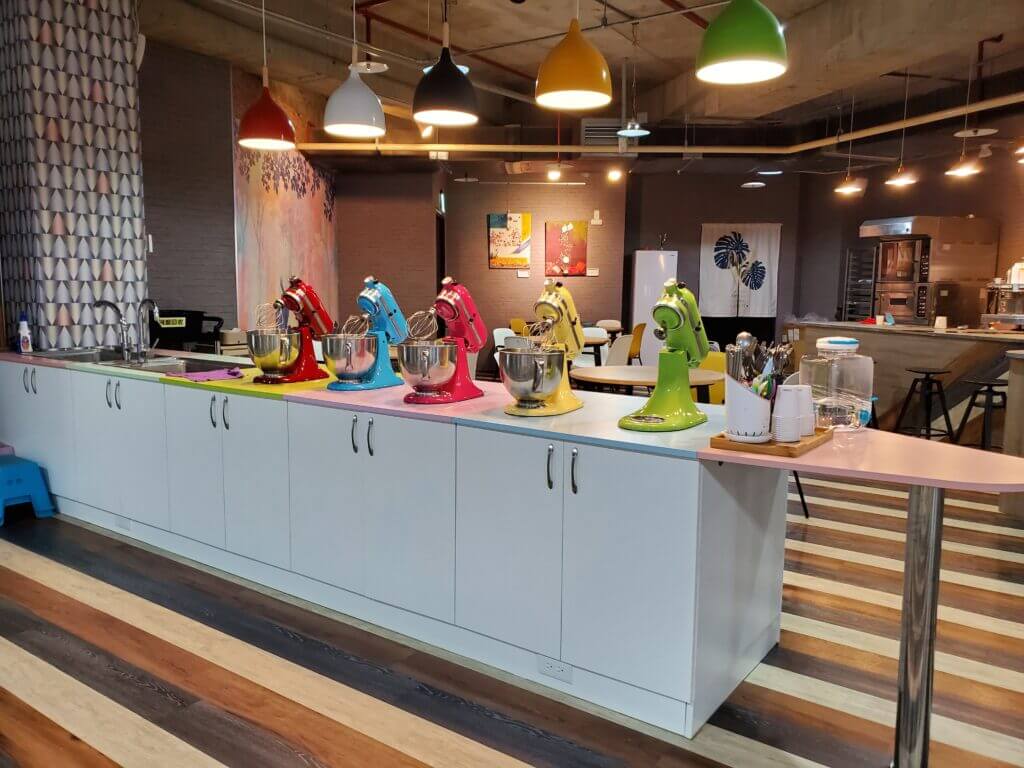 這裡還有圍兜兜可以穿,不用怕衣服會髒掉,就連小朋友的尺寸也有完全不擔心啊,器具看起來都非常乾淨和專業,而且DIY區的範圍很大,是可以讓大家好好大展身手的呢