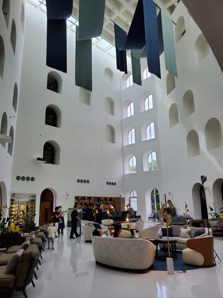 除了咖啡廳看起來這麼美外,就連大廳的休憩區都非常漂亮,一大片的落地窗自然採光,沙發也不單單只是沙發,曲折造型,也算是一種裝飾呢