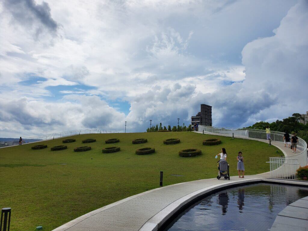 空中草原是採用現代感設計,除了超吸睛的斜坡大草原,還有水池和藝術裝置點綴這整個樓層,真的只有四個字能形容,超級漂亮 !