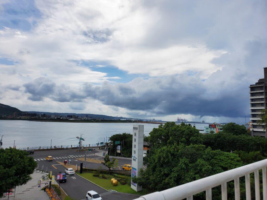 我們來到最上方的瞭望台,可以直接眺望淡水河的風景,再加上天氣的關係,竟然就被我們看到對面的午後雷陣雨的雲層,還有水龍捲的形成,大自然真是太奧妙了