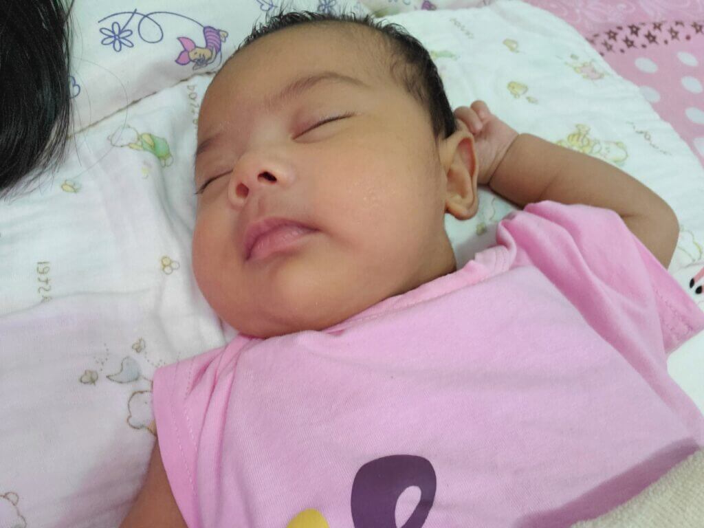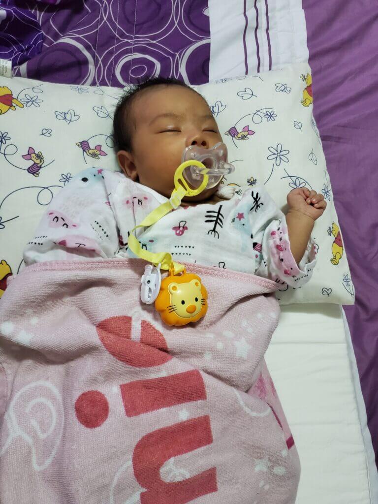 左邊搖右邊搖,上面搖下面搖,背拍拍屁股拍拍,所有安撫的方法全拿出來,到最後真的不行,只能請出被吸了兩次就被打入冷宮的奶嘴出來,也許是真的餓了,不吸奶嘴的媛媛從排斥到接受,也總算冷靜下來睡著了