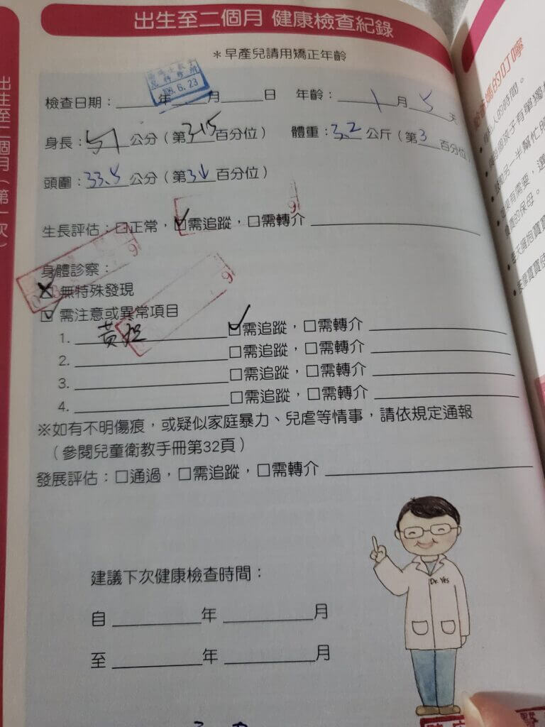 就這樣媛媛的追蹤黃疸回診之路,正式開始了,兩個禮拜回診一次,就這樣到了3個多月時,媛媛的黃疸都已經退的差不多了,整個人看起來也不再是黑麻麻的樣子了