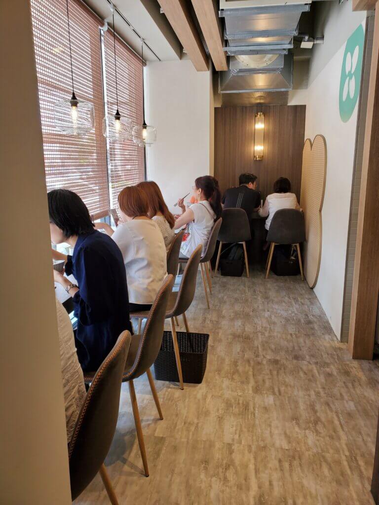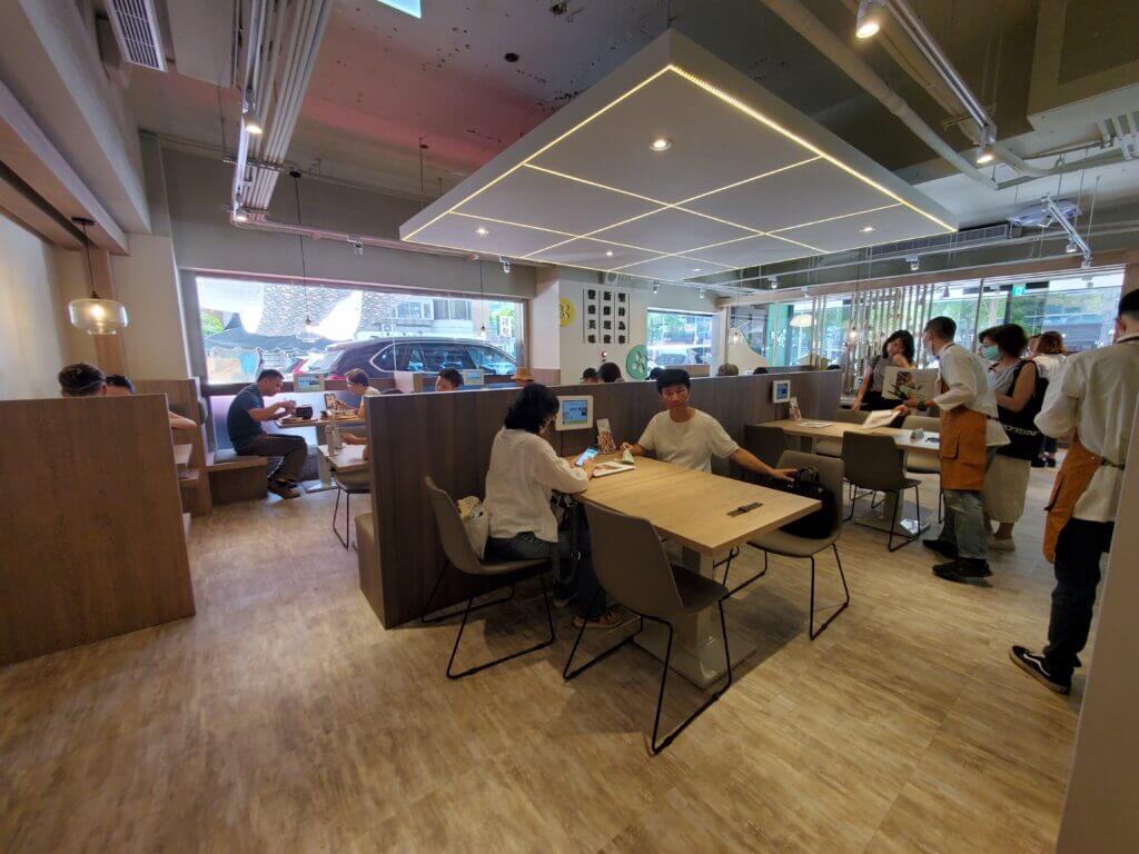 座位跟座位中間間隔蠻大的,不會有很擁擠的感覺,除了常見的4人位外,還有吧台位、雙人位,以及很有特色的類似小包廂的座位區,當天服務人員看到我們帶著媛媛,還特地幫我們安排沙發區,真是太加分了~