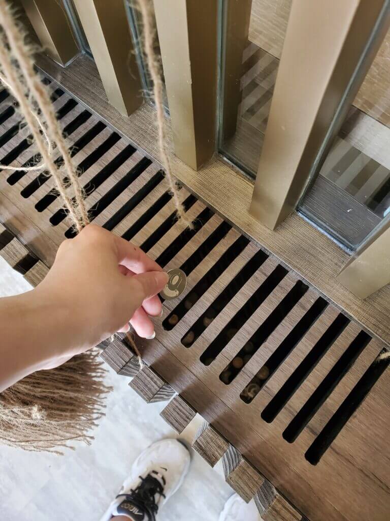 按照日本神社參拜的流程,雙手合十拜拜再投入零錢,最後再搖一搖搖鈴,整個祈求流程就是這麼簡單,而投入的零錢則是會捐款到「安德烈慈善協會」,幫助更多人可以吃飽