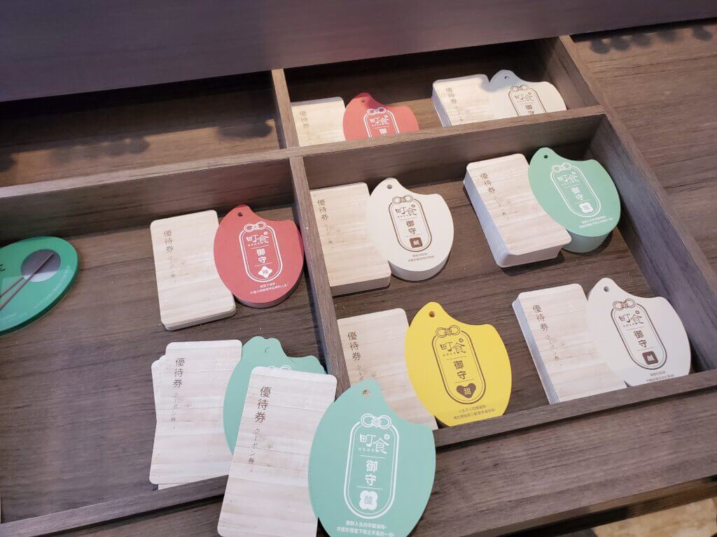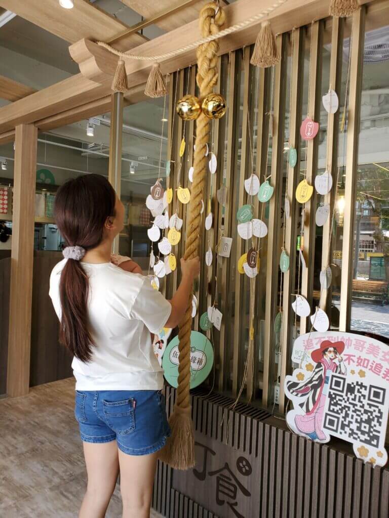 在「町食就是定食」裡,有一個最特別的地方,就是在一進來的入口處,可以看到日本的祈福搖鈴,一旁還有小卡片可以寫上自己的願望許願