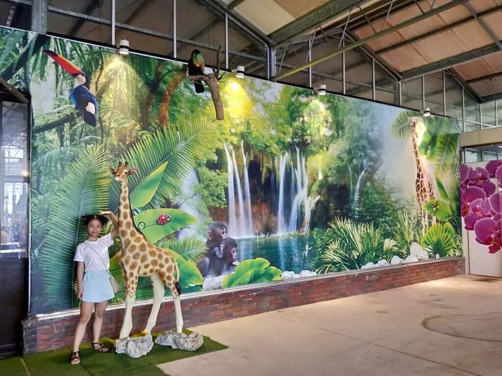 在金車蘭花園的入口處可以看到打卡牆,牆壁上的畫非常真實,在旁邊還有一個立體長頸鹿可以和他拍照比身高哦