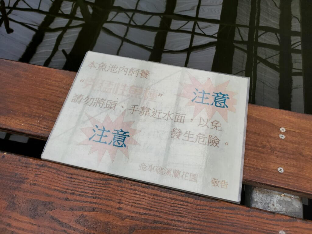 這邊特別提醒,金車蘭花園沒有提供工具夾取魚塊, 如果直接用手去拿會在手上留下非常可怕的味道,建議要來餵食的朋友還是自備一下工具吧