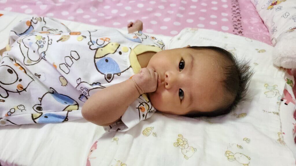 就在某一天,睡到一半醒來的媛媛,一眼就是還想睡覺的樣子,通常這時候我們只要輕輕的拍一拍她就會繼續睡,但是這天,我看到了他的小手又慢慢移動到了嘴邊,就決定先來觀察看看