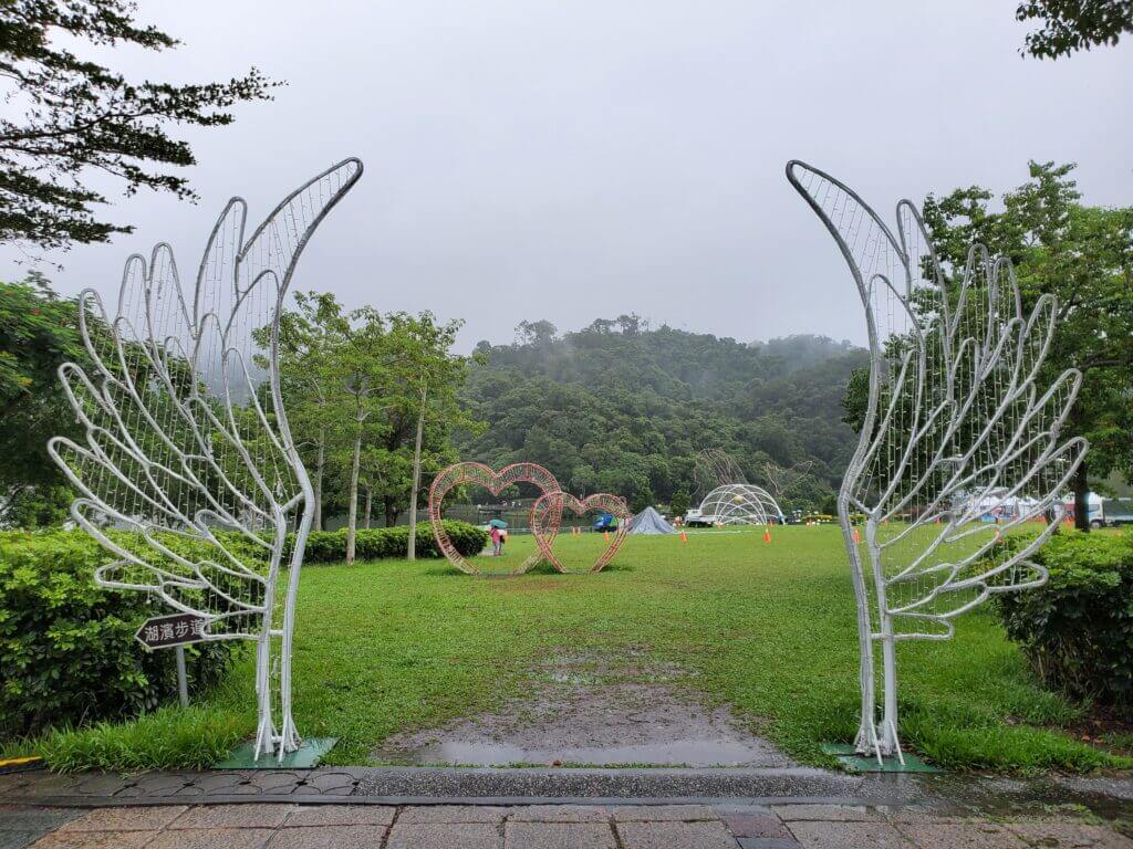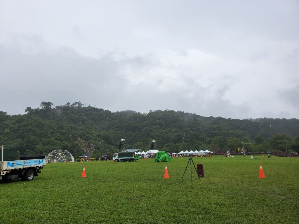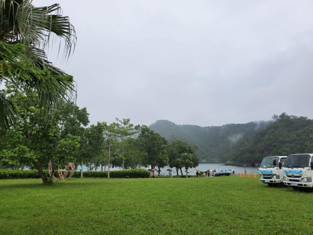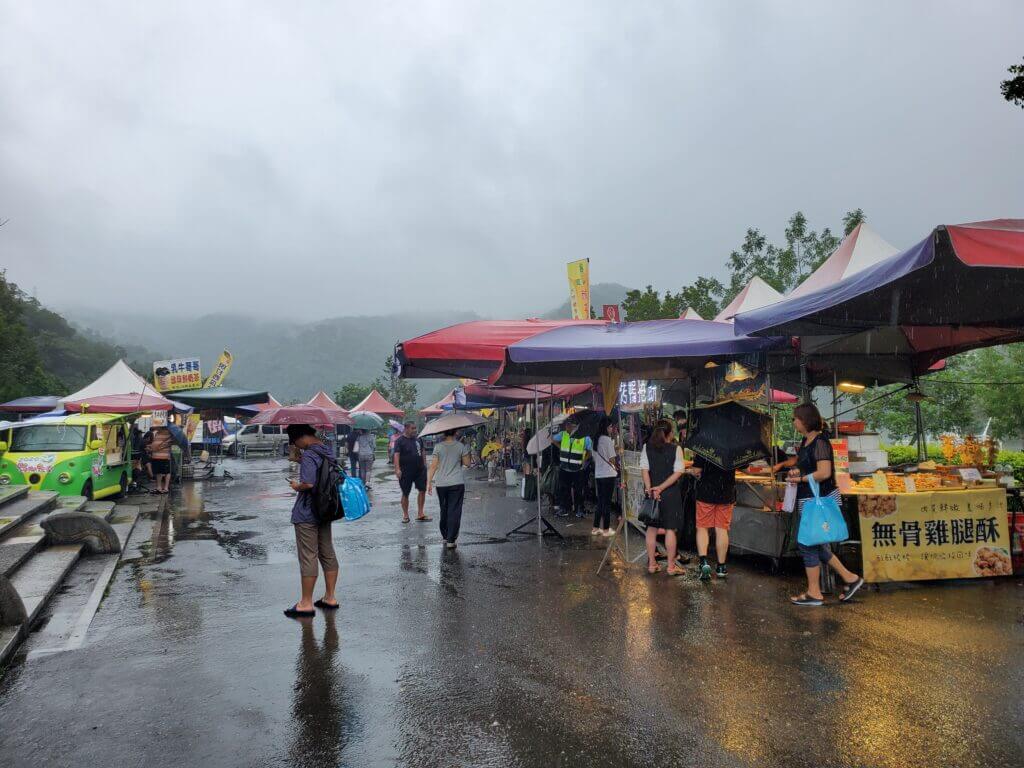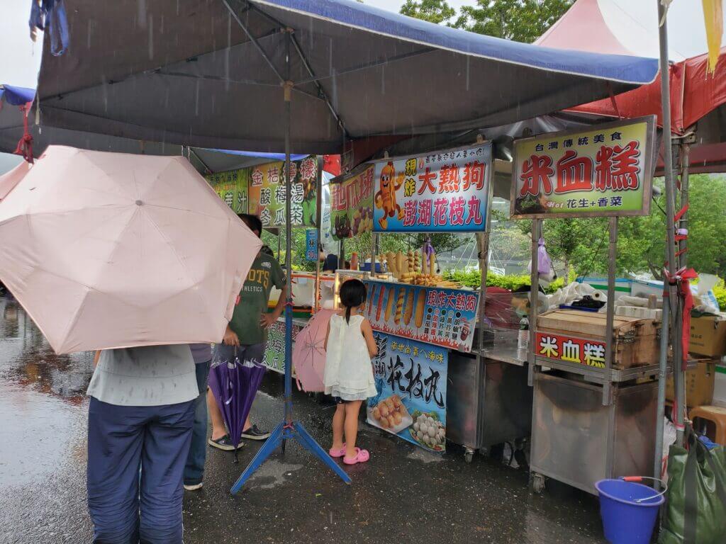 我們從金車蘭花園開車來到龍潭湖,10分多鐘的路程,沒有下任何一滴雨,我們還很開心,但是沒想到在我們進停車場停好車以後,竟然開始飄雨,不死心的我們還是堅持到會場去看看