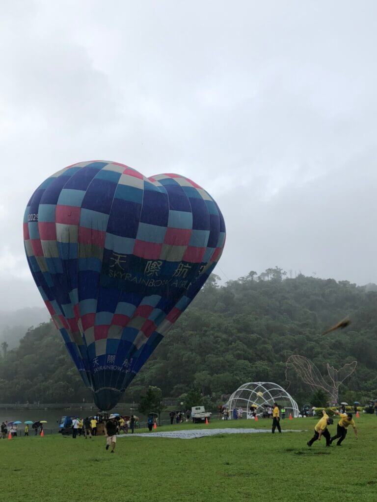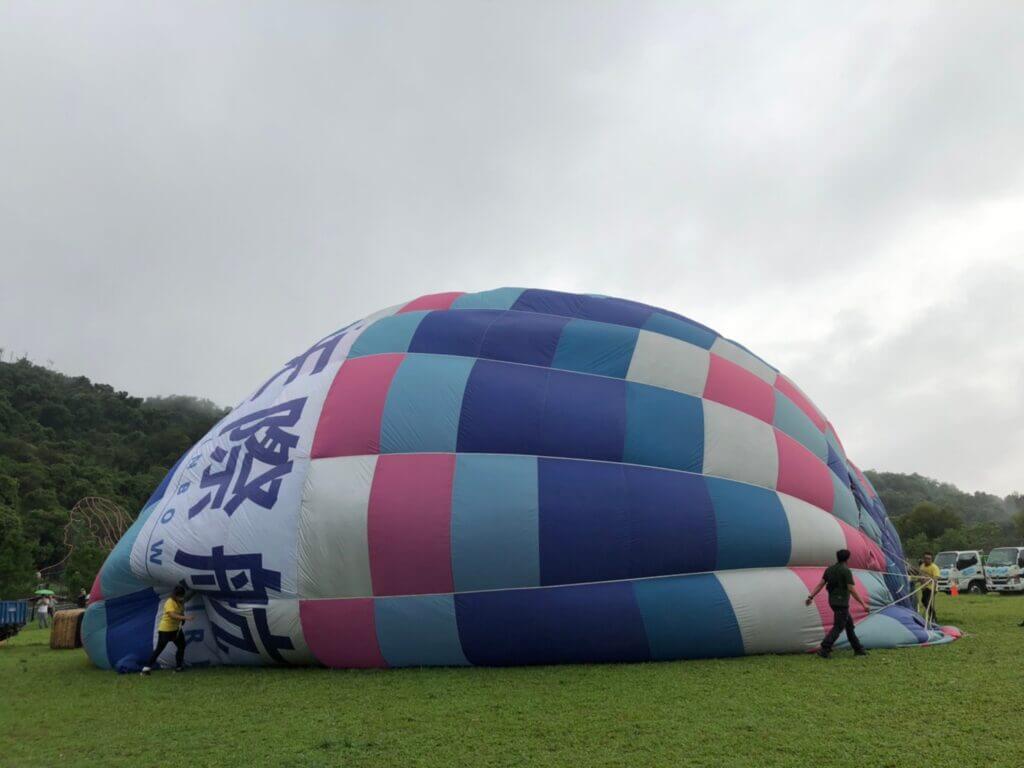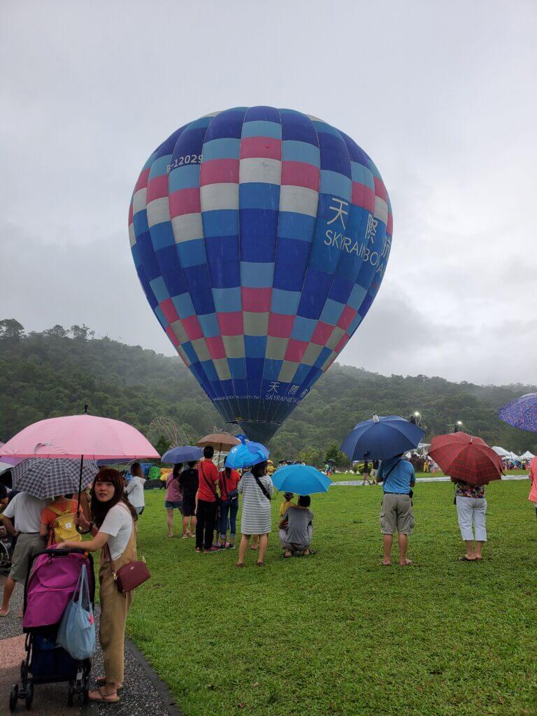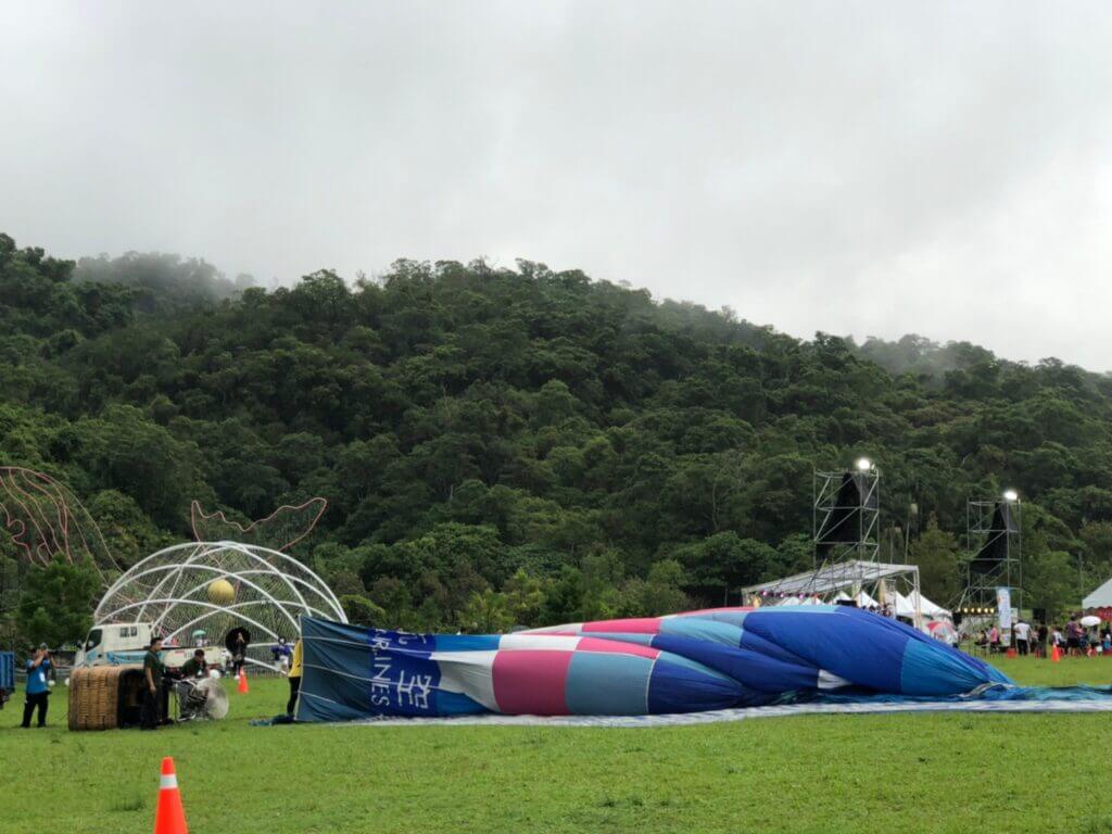 不過雨勢漸漸變大,原本工作人員還在想說看能不能將熱氣球升空,但是真的沒有辦法只能再將好不容易充飽的熱氣球消氣收起來