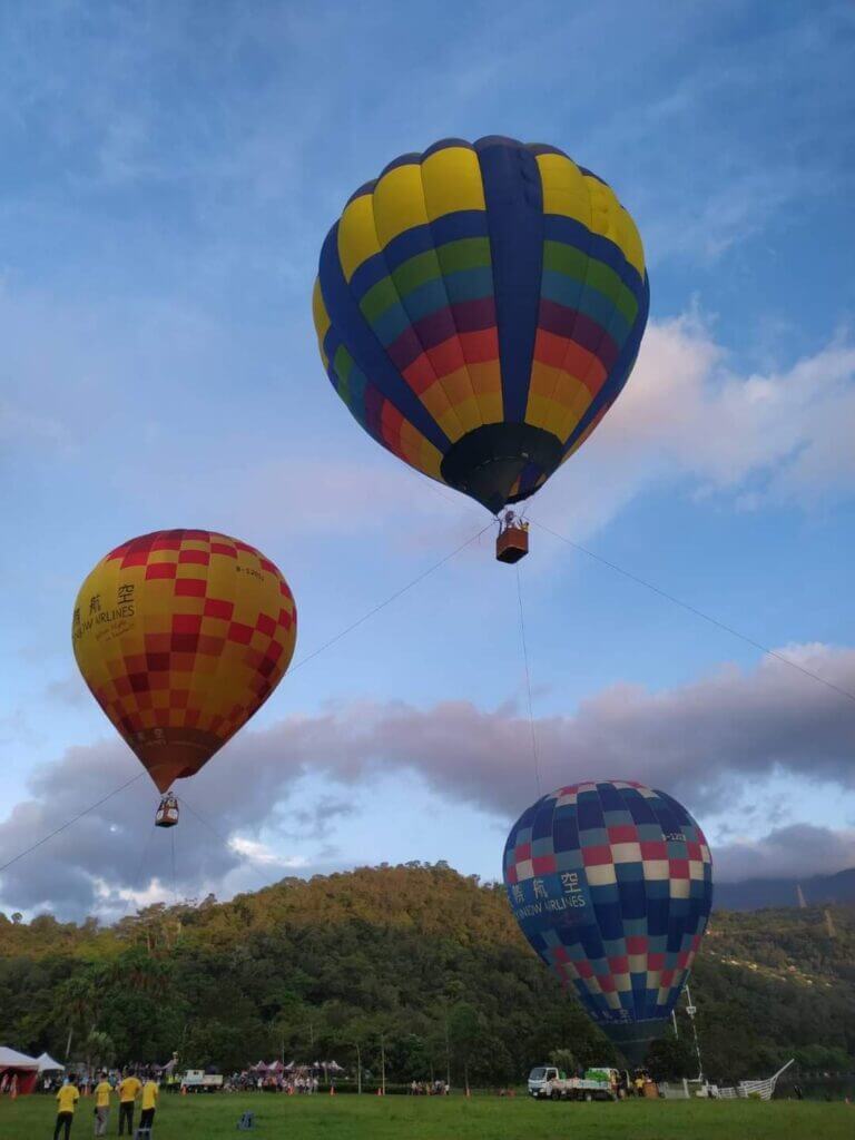 雖然這一次沒有看到熱氣球真的升空,不過可以看到展出我就已經心滿意足了,後來我們要離開前有詢問工作人員有沒有早上熱氣球升空的照片能夠分享,他也很大方的分享了好幾張給我們看