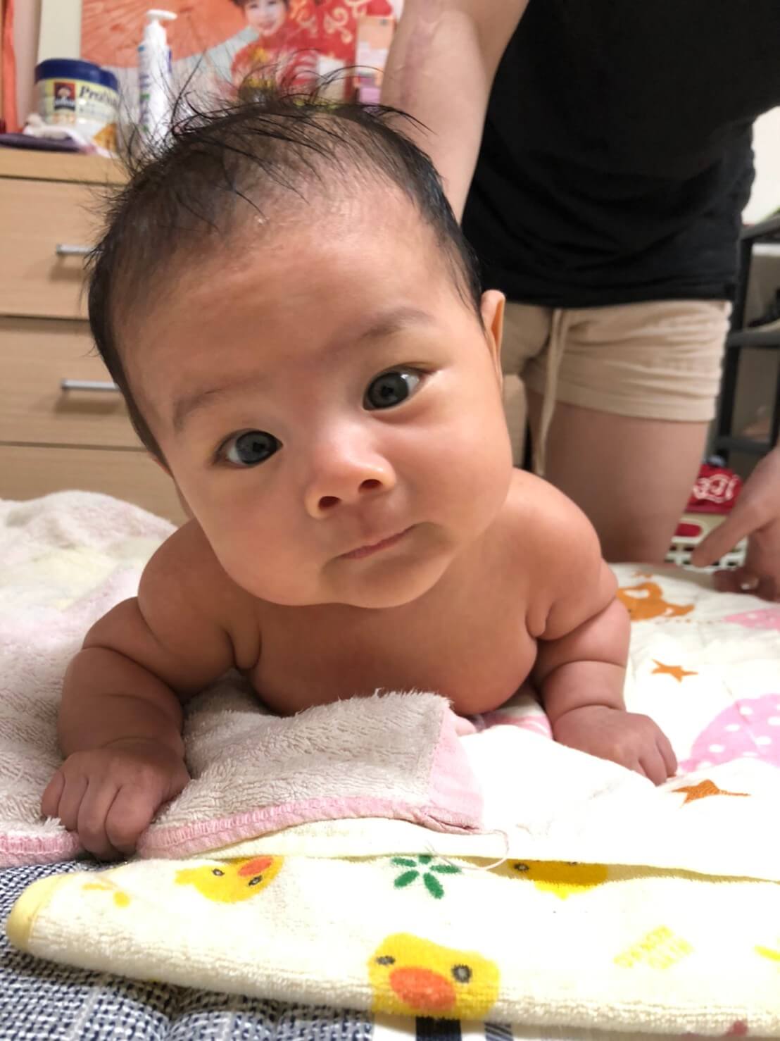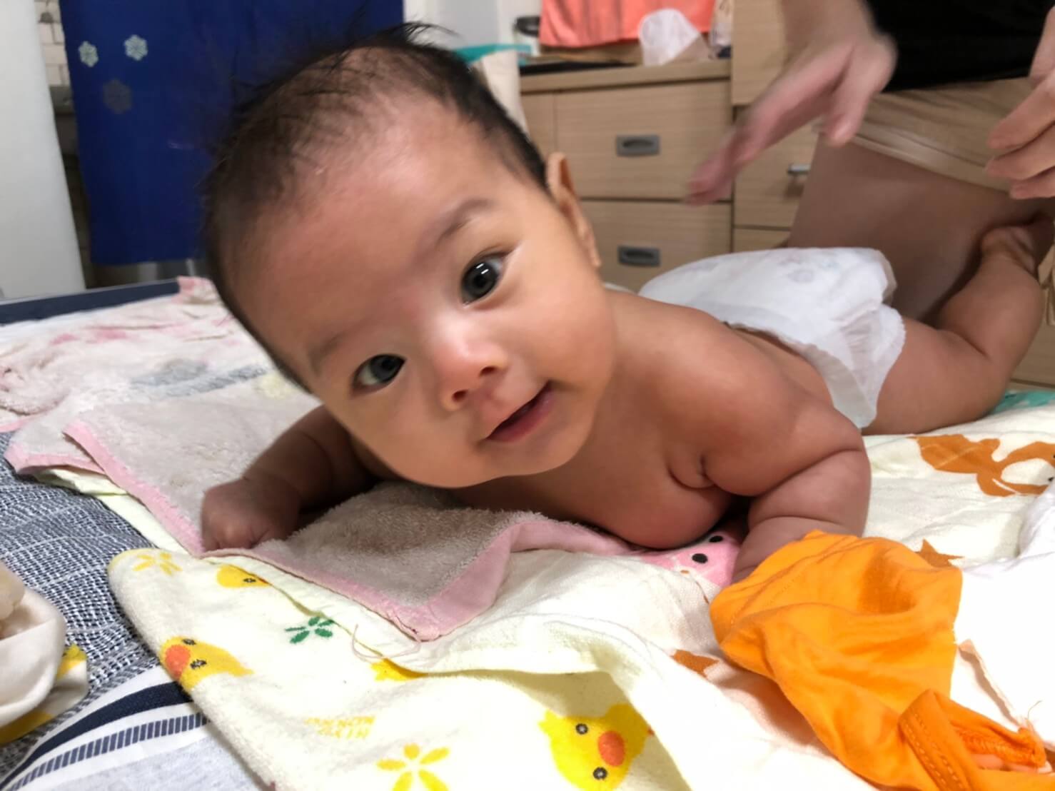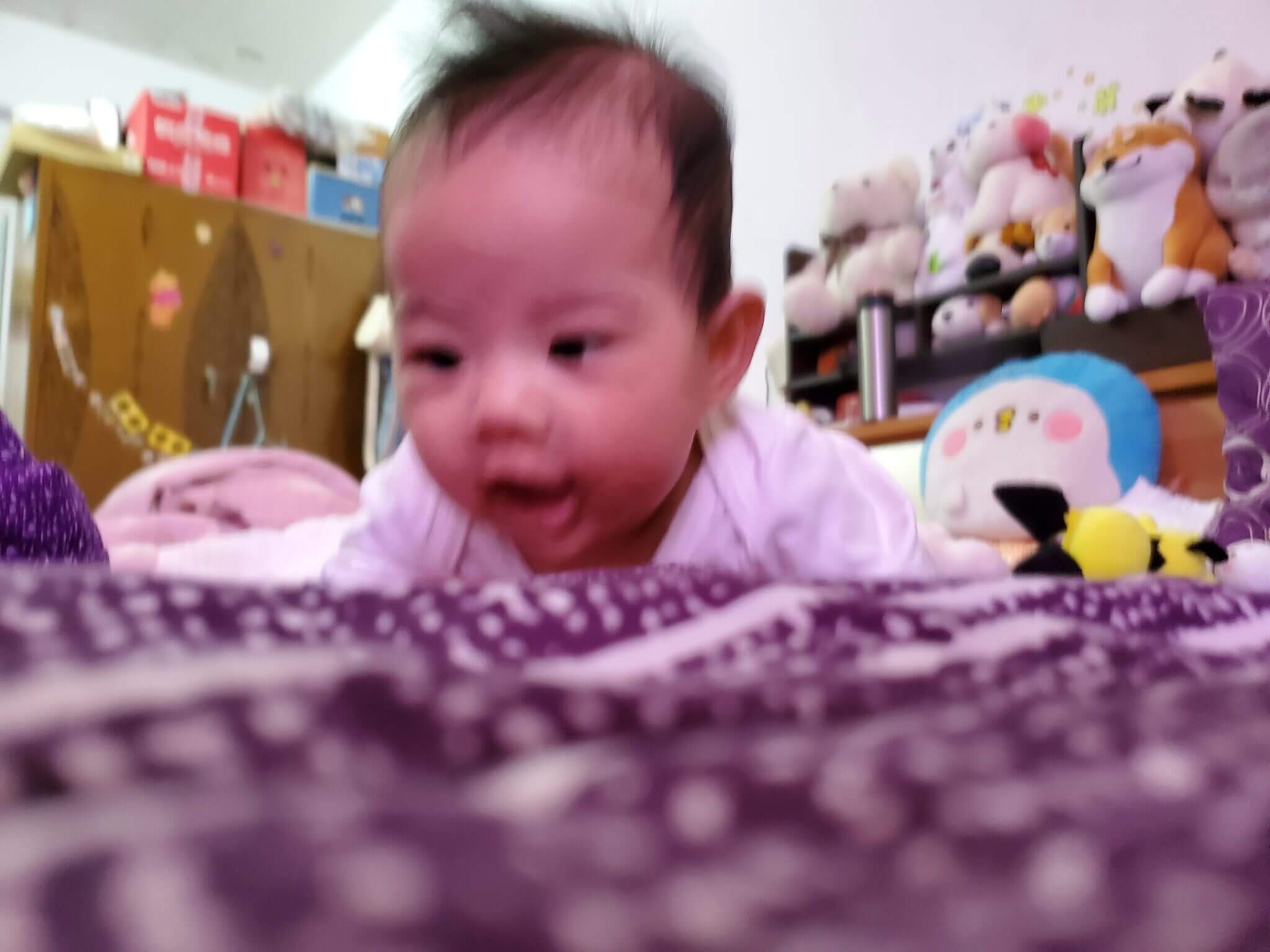 滿三個月沒多久,發現媛媛身體越來越會扭動,時不時都會變成側身,這時候我心想 該不會要開始學翻身了吧 !!!