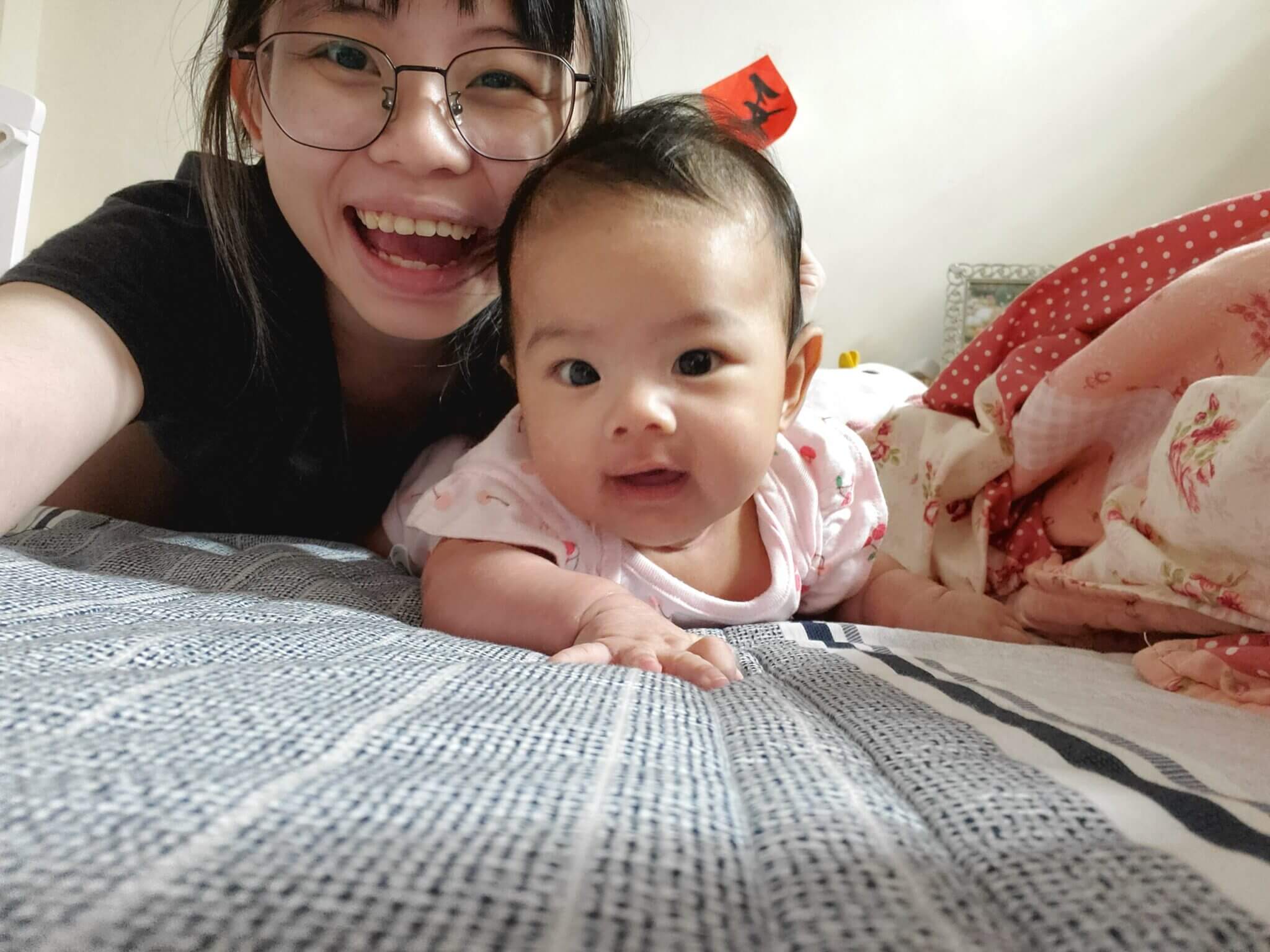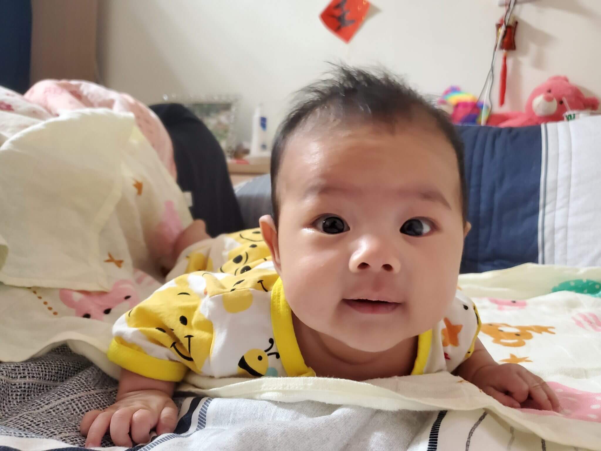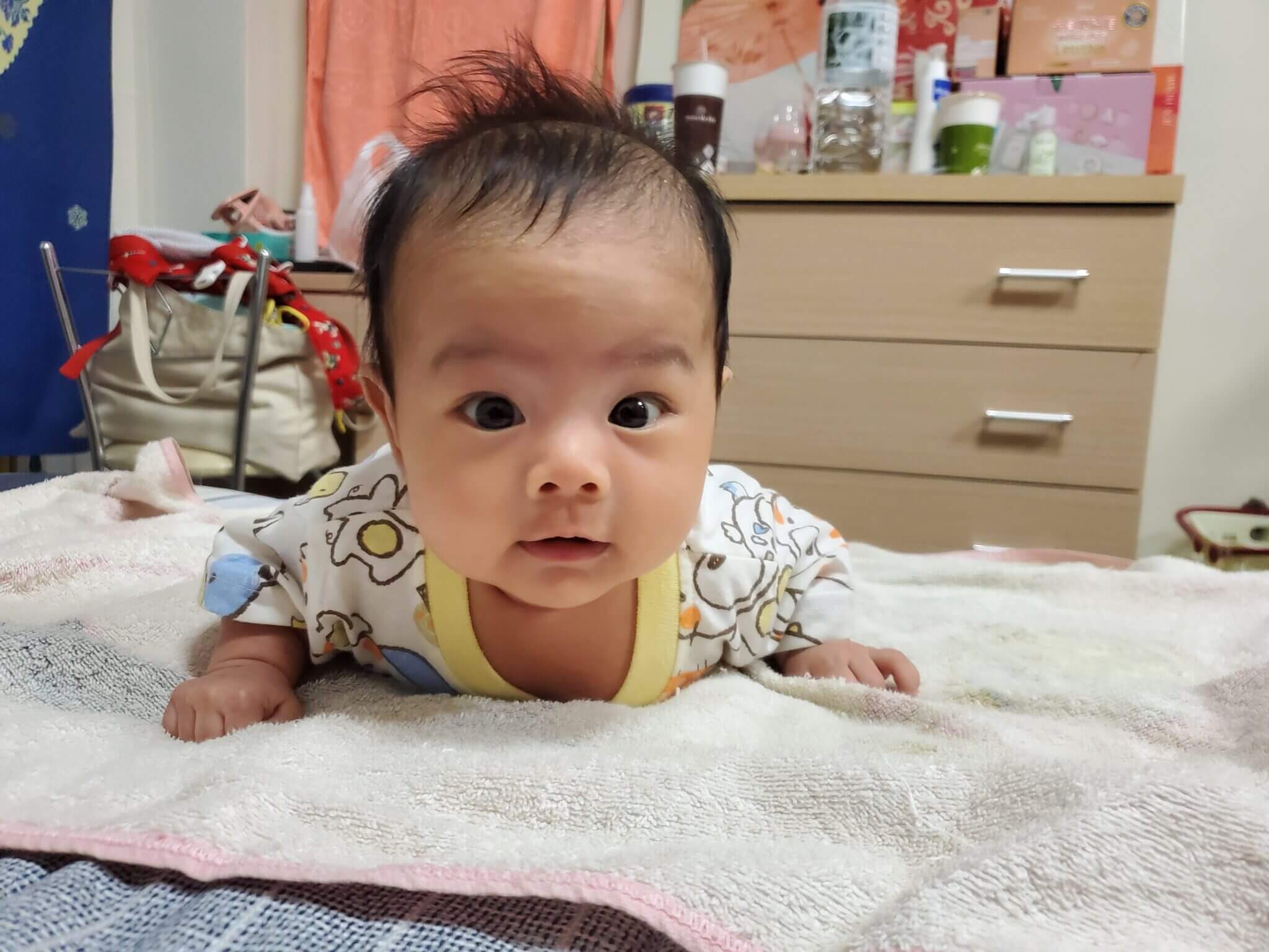 滿三個月沒多久,發現媛媛身體越來越會扭動,時不時都會變成側身,這時候我心想 該不會要開始學翻身了吧 !!!